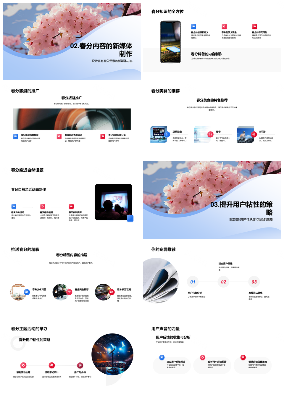 春分文化新媒体推广习俗美食旅游樱花运营PPT模板推荐