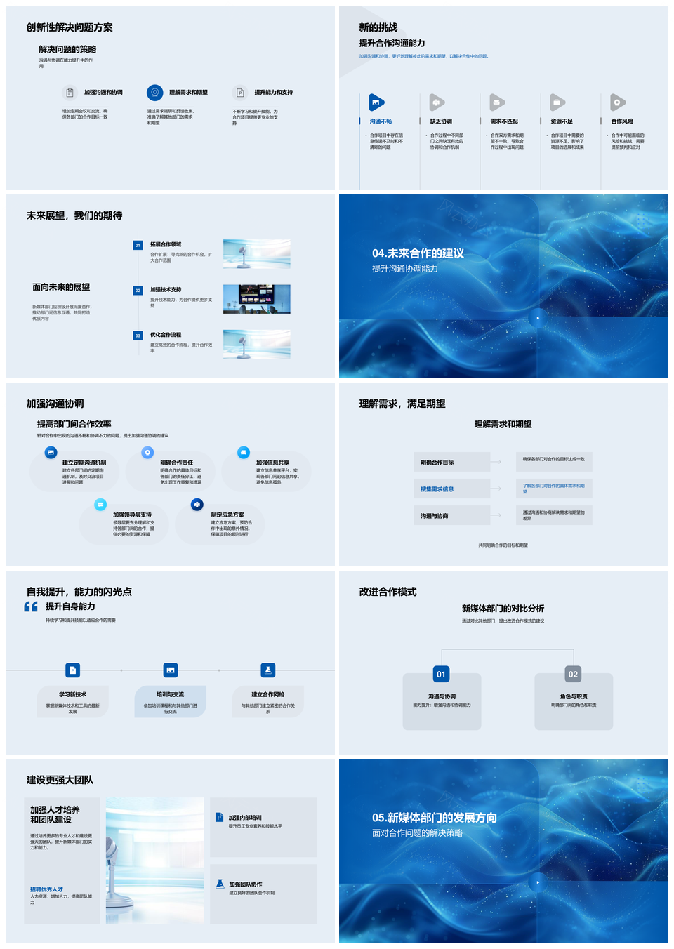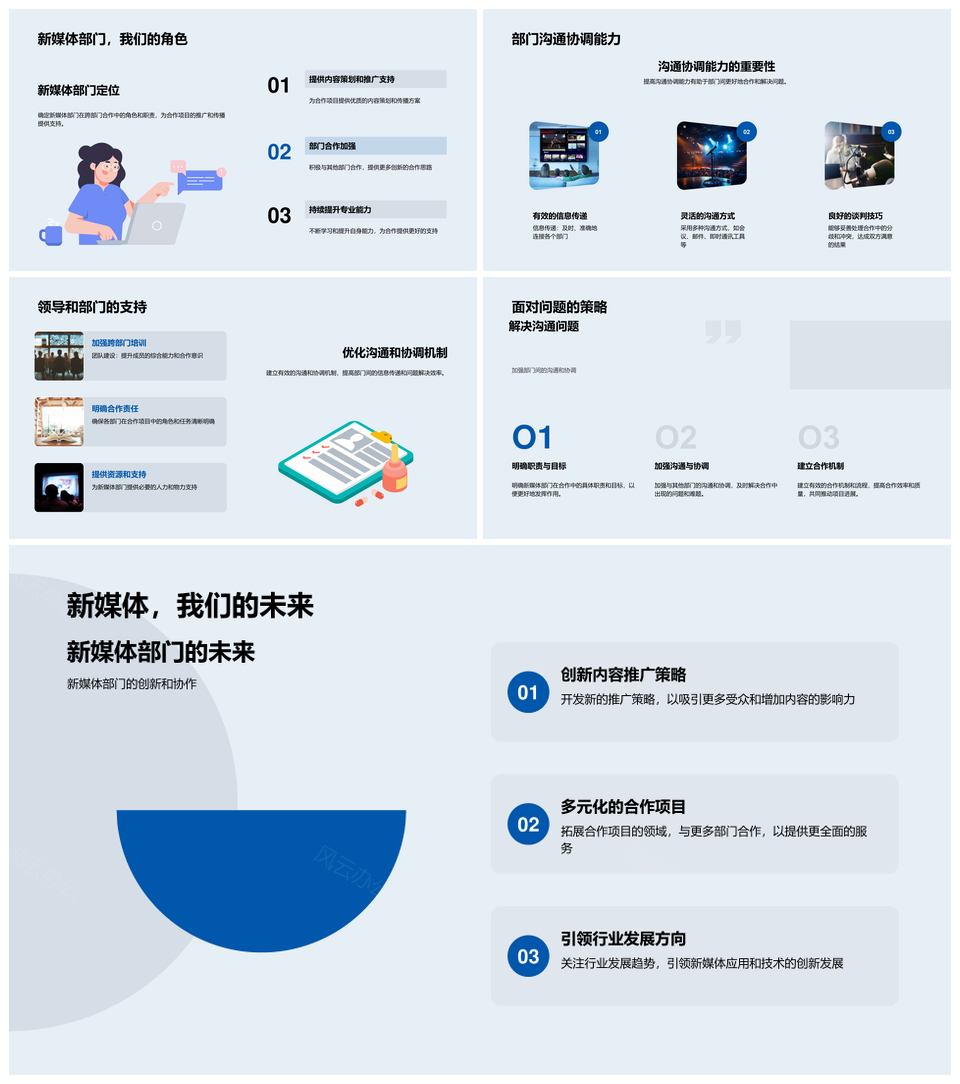 这是一张新媒体部门合作项目成果挑战总结汇报PPT模板,包含新媒体部门、合作项目、成果、挑战、总结、汇报等主题内容,也可用作新媒体部门合作项目成果挑战总结汇报、部门合作项目成果挑战总结、合作项目成果挑战总结汇报、新媒体合作项目成果挑战、部门项目成果挑战总结、合作成果挑战总结汇报、新媒体部门合作项目成果、部门合作项目成果挑战、合作项目成果挑战总结、项目成果挑战总结汇报、新媒体部门合作项目、部门合作项目成果、合作项目成果挑战、项目成果挑战总结、成果挑战总结汇报等PPT场景使用。
