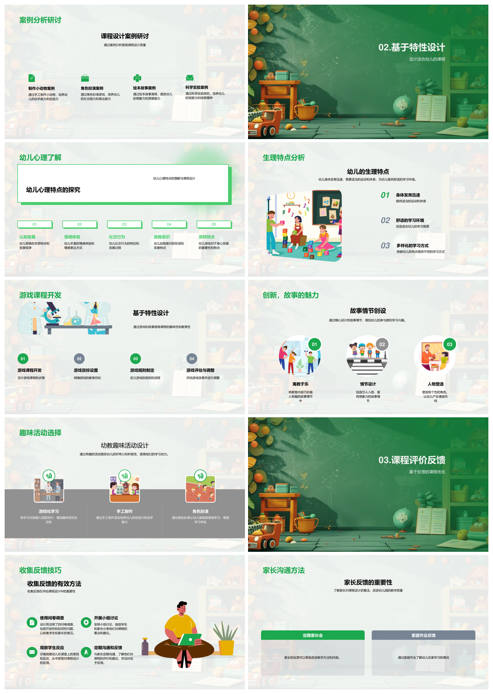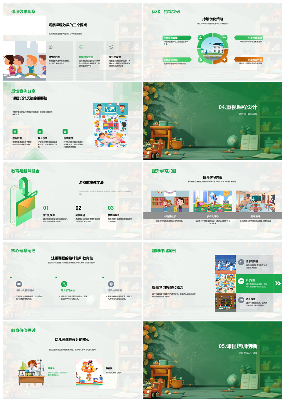 幼儿教育课程设计课件寓教于乐师训身心家校反馈PPT模板推荐