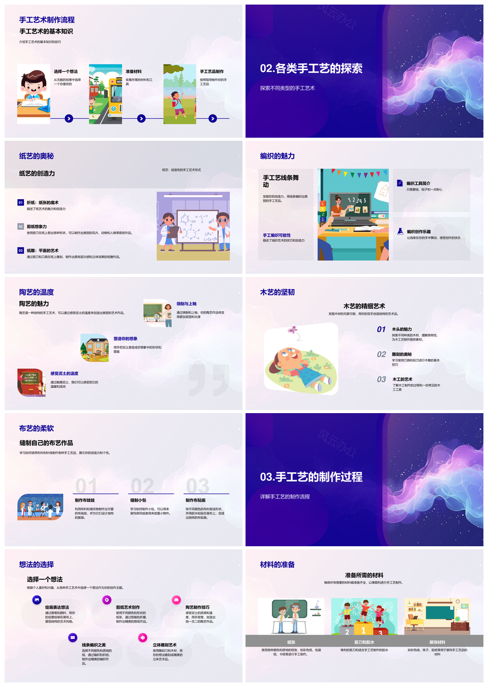 手工艺术教学材料工具流程创造潜力纸编陶艺PPT模板推荐