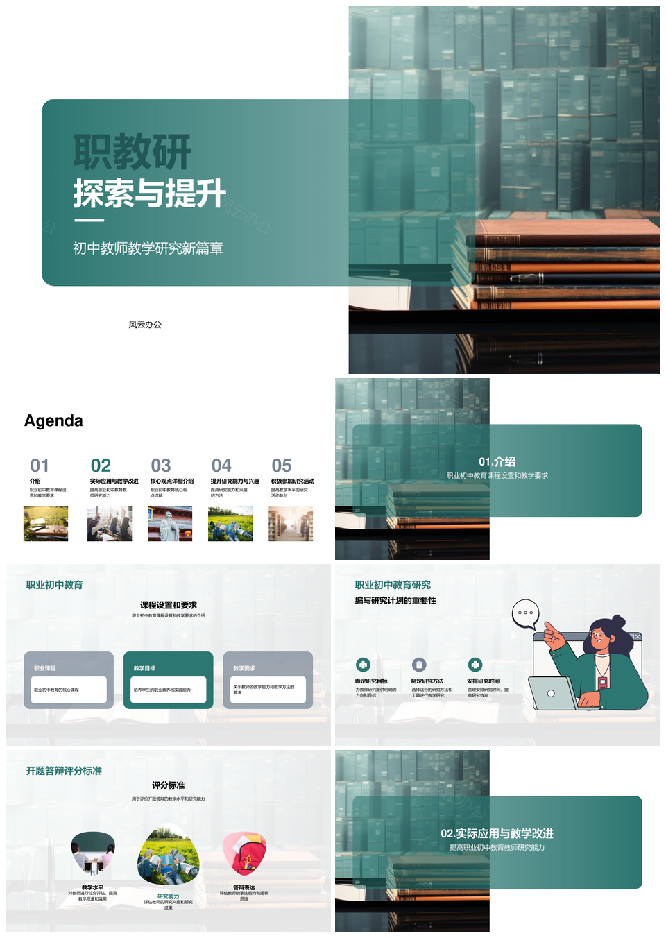 风云办公提供的职教教师开题答辩与教学提升研究PPT模板,下载格式为pptx,一共23页,作品中文字及图均可以修改和编辑,图片更改请在作品中右键图片并更换,文字修改请直接点击文字进行修改。