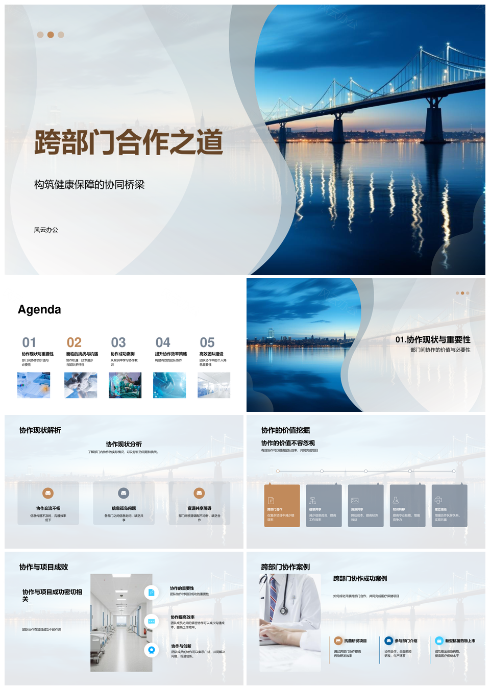 蓝色简约跨部门沟通与协作PPT模板