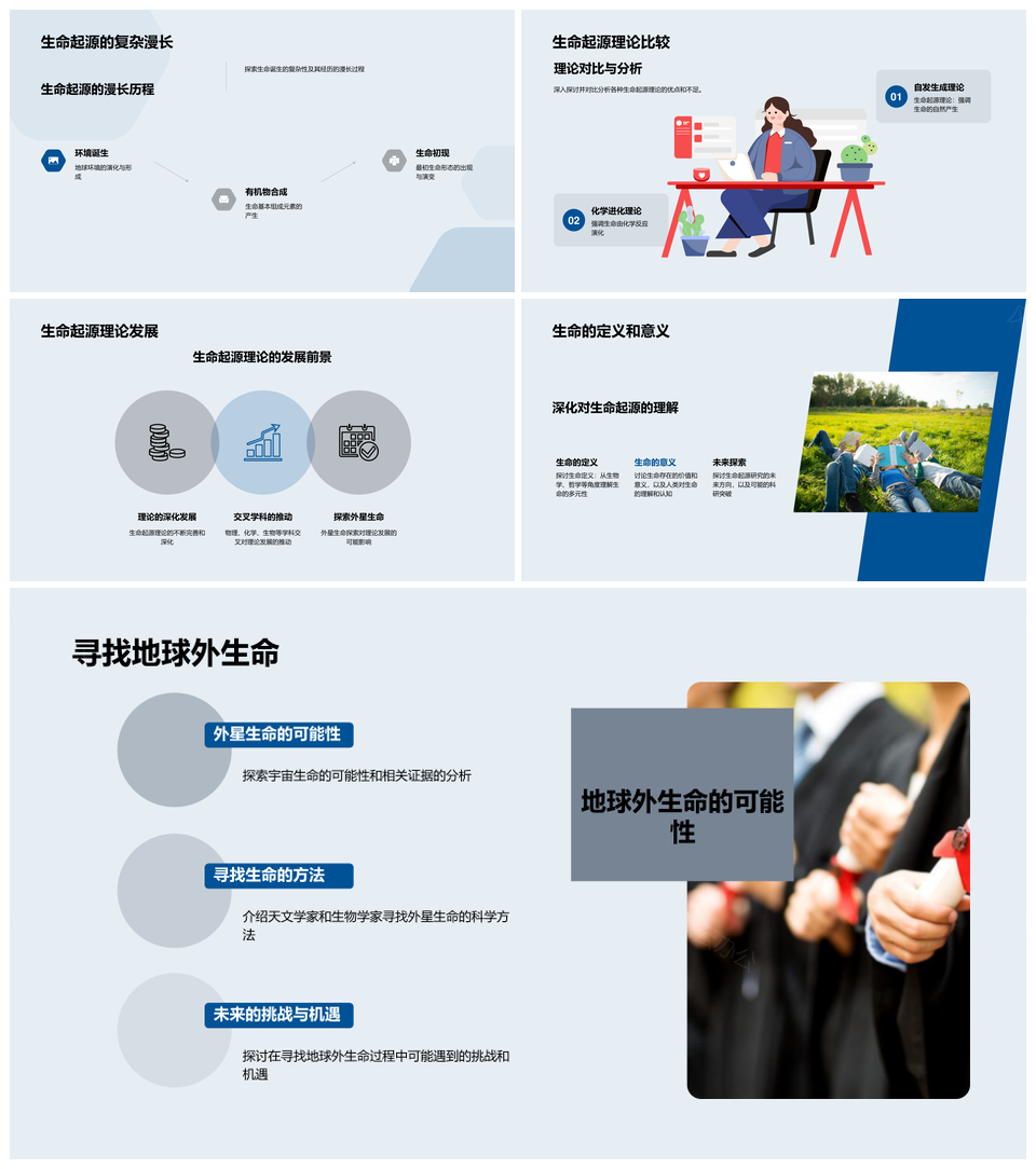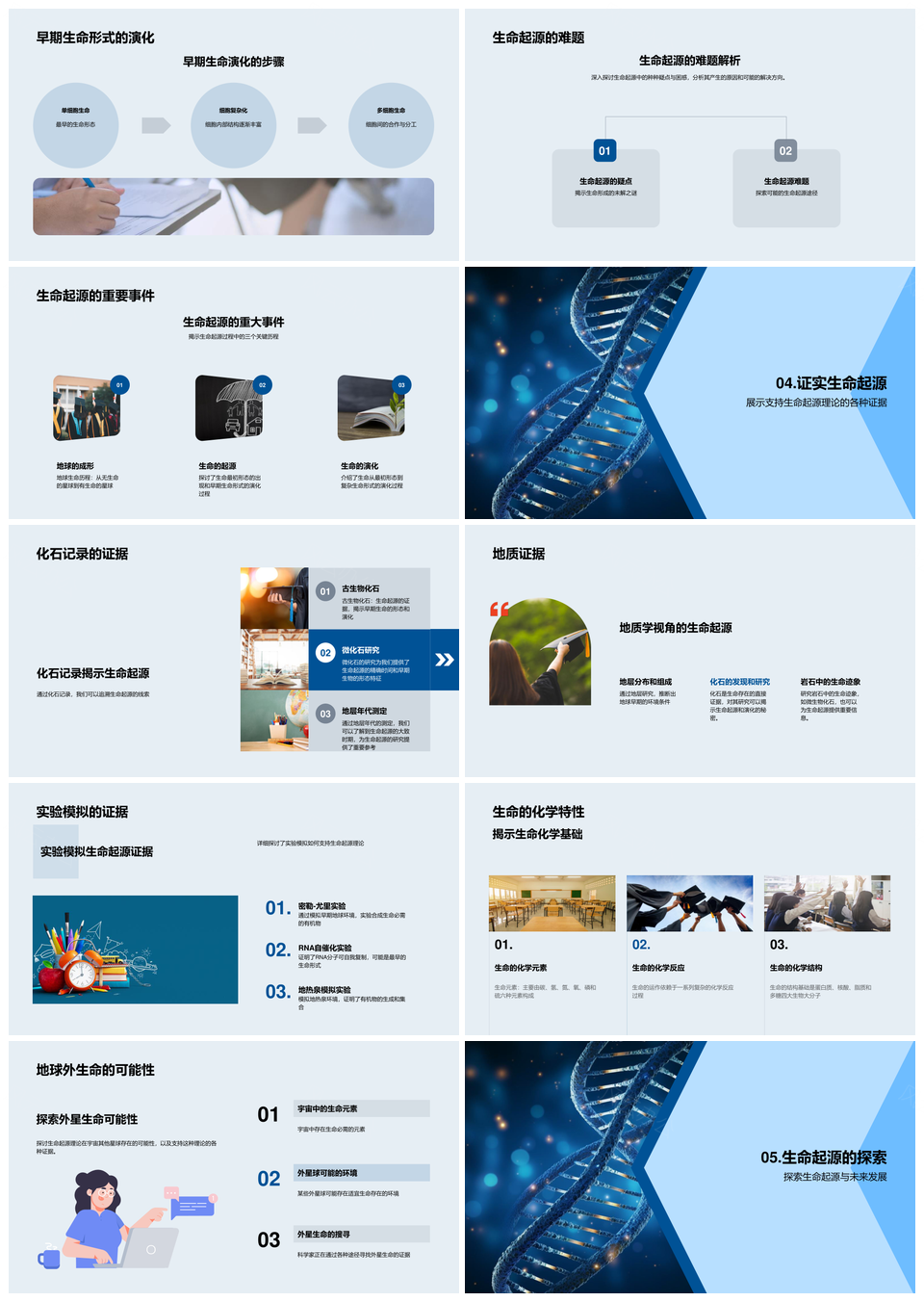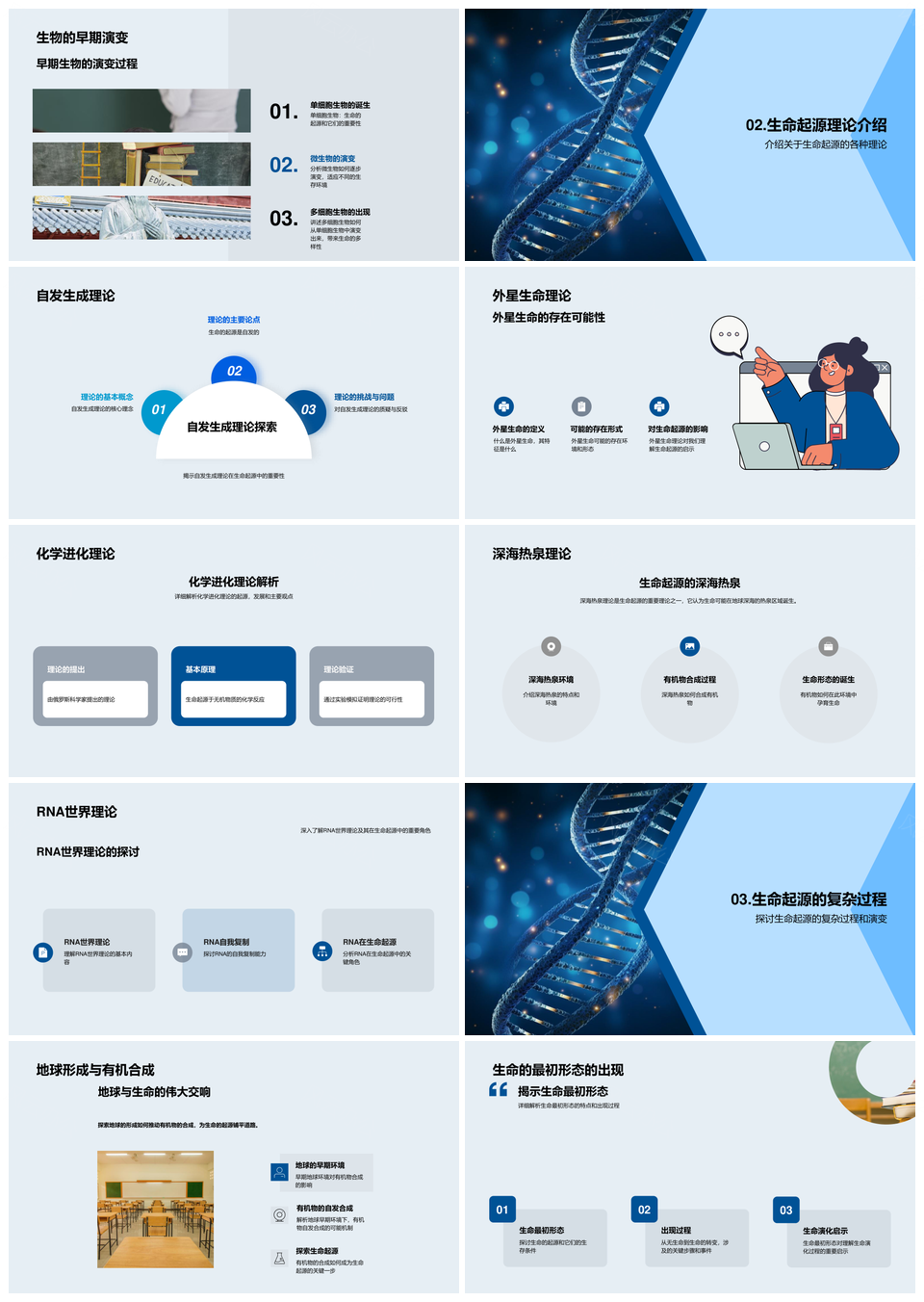 风云办公提供的地球生命起源与化学生成外星理论PPT模板,下载格式为pptx,一共33页,作品中文字及图均可以修改和编辑,图片更改请在作品中右键图片并更换,文字修改请直接点击文字进行修改。