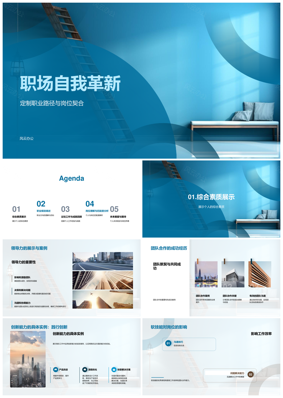 职场自我革新定制职业路径锻造领导力软技能PPT模板推荐