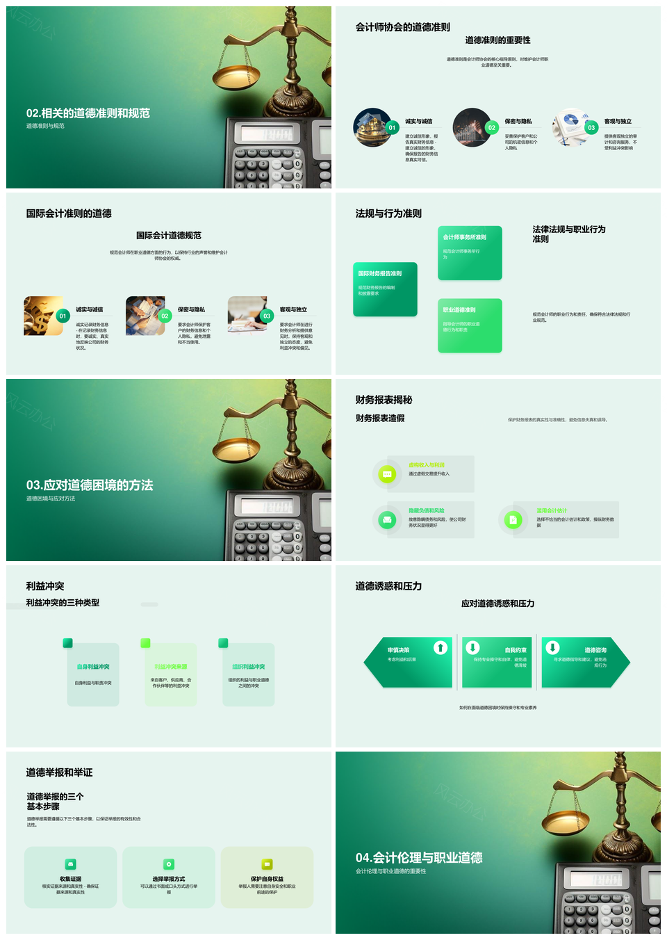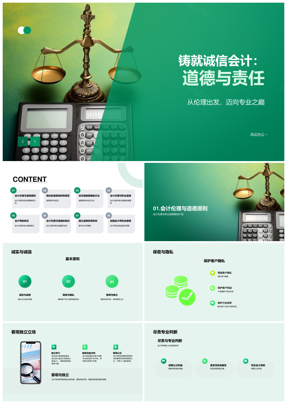 风云办公提供的会计伦理职业道德铸就诚信天平PPT模板,下载格式为pptx,一共37页,作品中文字及图均可以修改和编辑,图片更改请在作品中右键图片并更换,文字修改请直接点击文字进行修改。