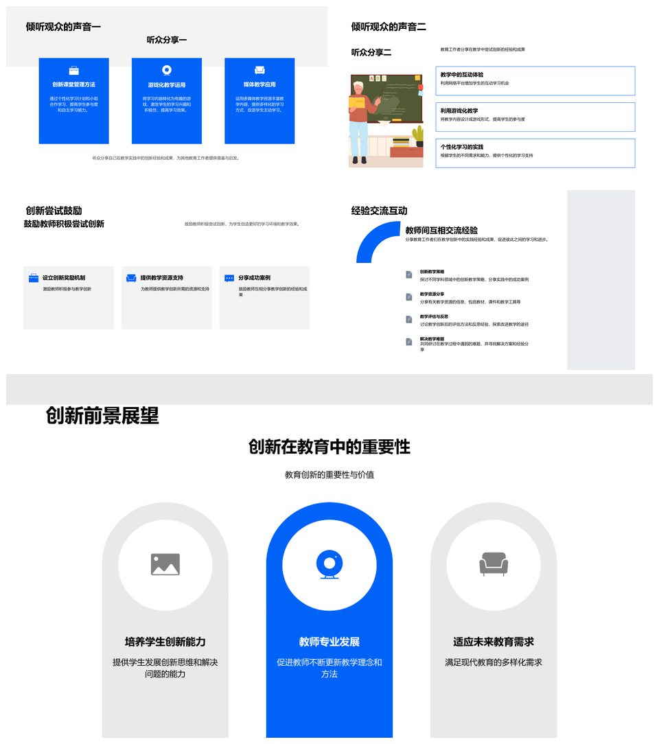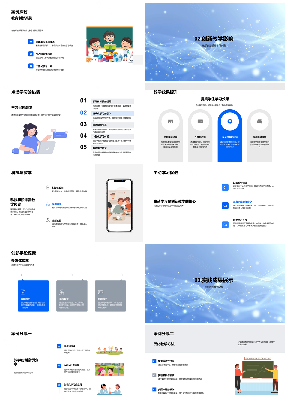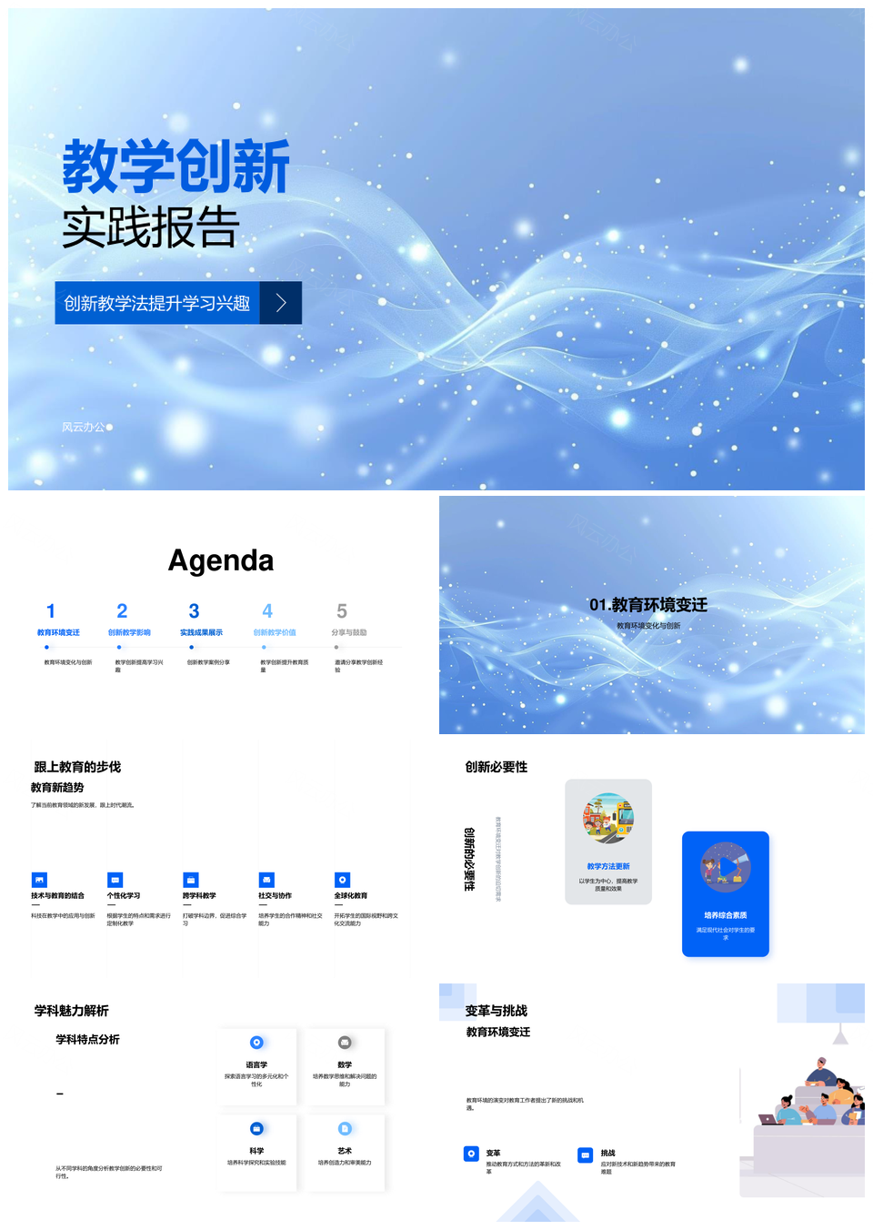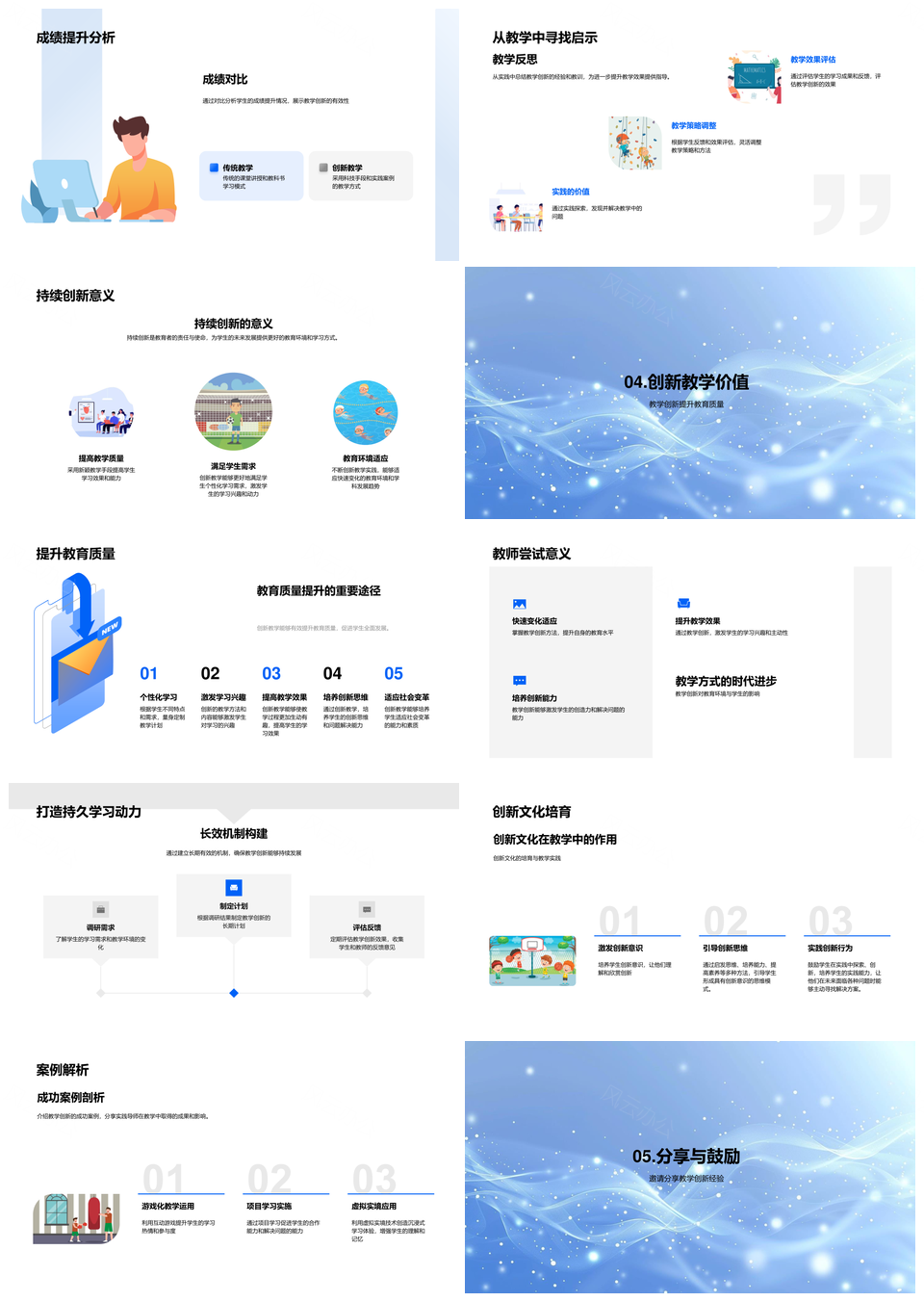这是一张教学创新激趣促学科技赋能教育新趋势提质PPT模板,包含教学创新、激趣、促学、科技、赋能、教育、新趋势、提质等主题内容,也可用作教学创新激趣促学科技赋能、激趣促学科技赋能教育新趋势、促学科技赋能教育新趋势提质、教学创新激趣促学、激趣促学科技赋能、促学科技赋能教育新趋势、科技赋能教育新趋势提质、教学创新激趣、激趣促学、促学科技赋能、科技赋能教育新趋势、教育新趋势提质等PPT场景使用。 风云办公提供的教学创新激趣促学科技赋能教育新趋势提质PPT模板,下载格式为pptx,一共33页,作品中文字及图均可以修改和编辑,图片更改请在作品中右键图片并更换,文字修改请直接点击文字进行修改。
