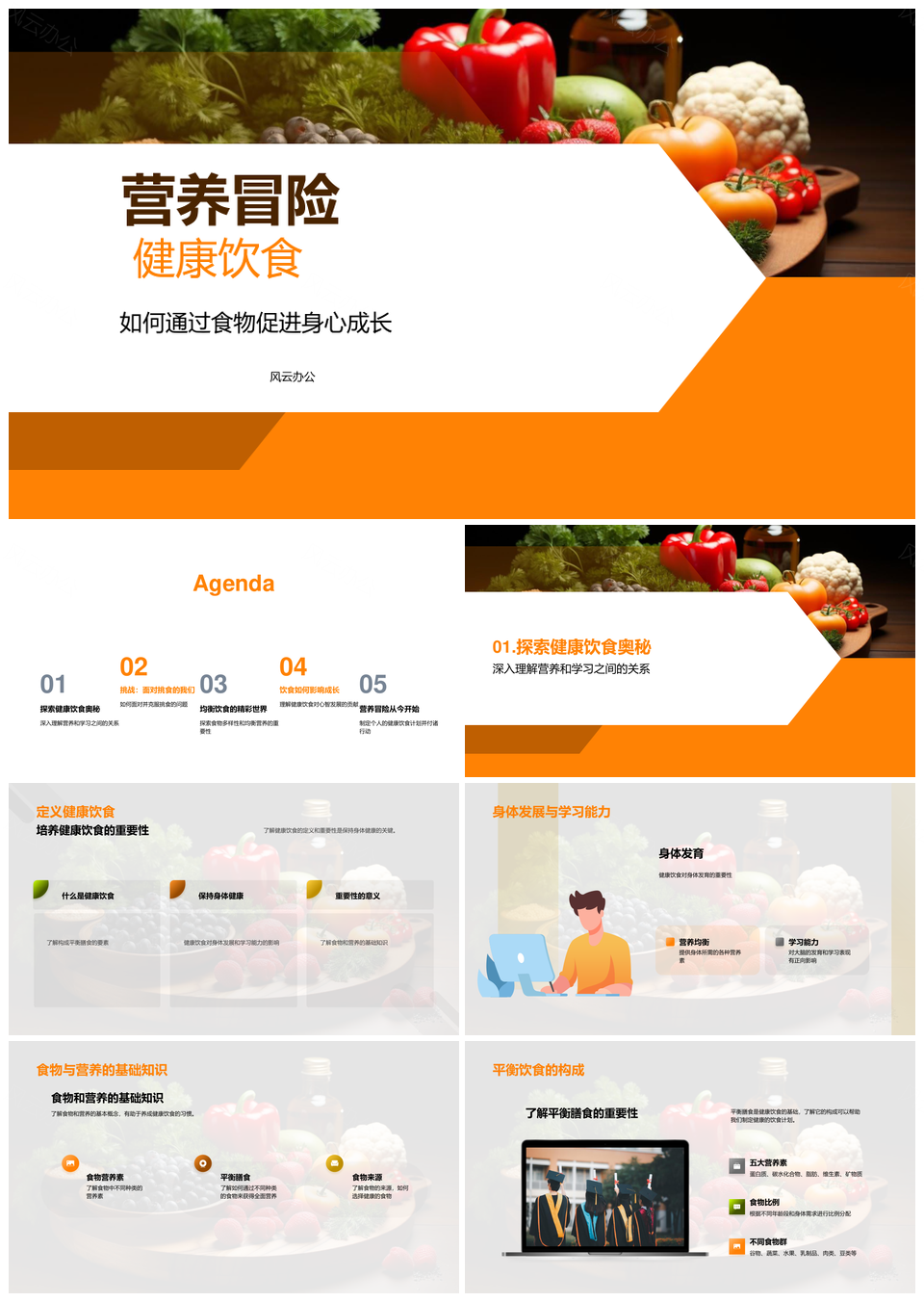 风云办公提供的健康饮食冒险挑战挑食平衡多样营养PPT模板,下载格式为pptx,一共28页,作品中文字及图均可以修改和编辑,图片更改请在作品中右键图片并更换,文字修改请直接点击文字进行修改。