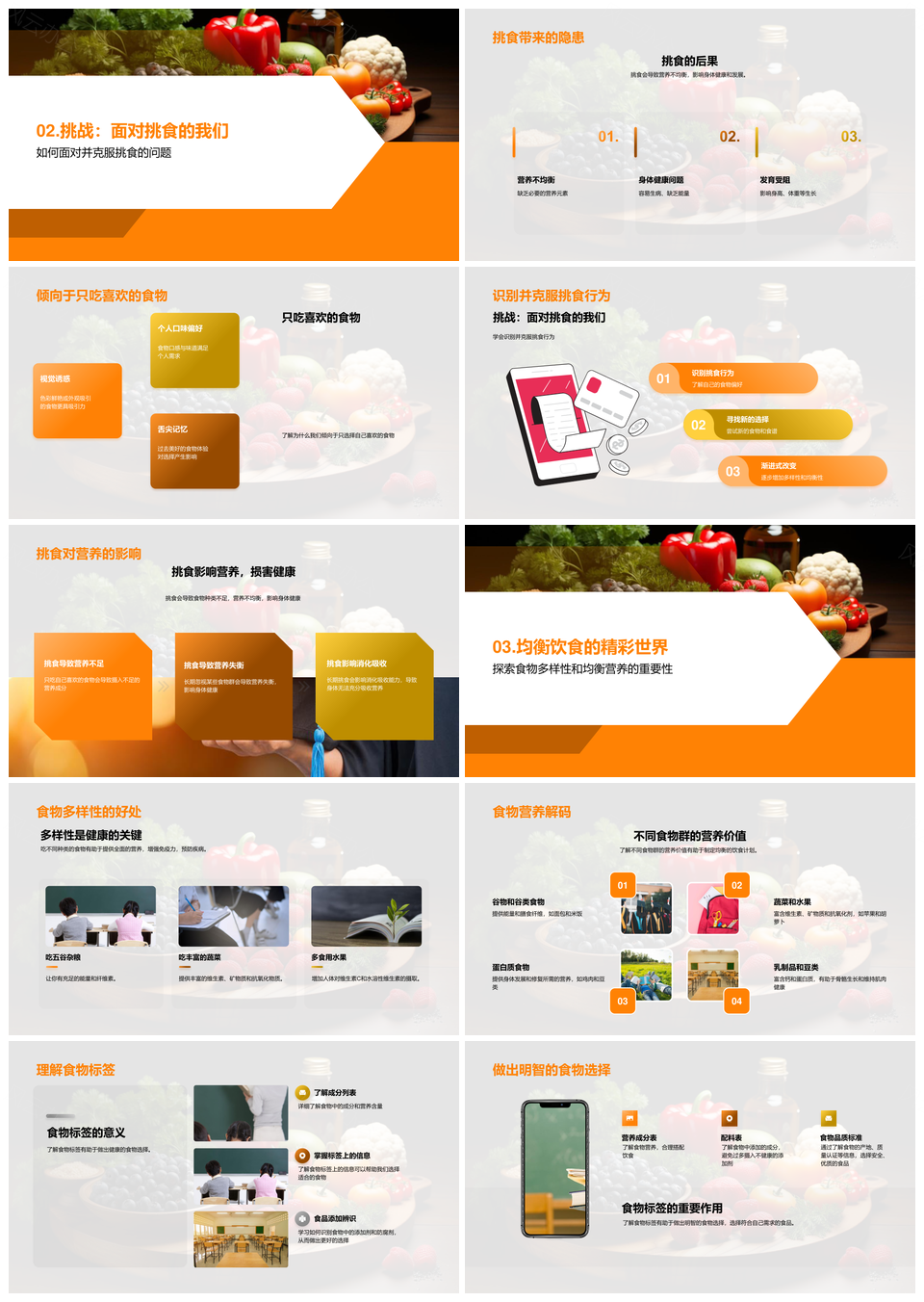 这是一张健康饮食冒险挑战挑食平衡多样营养PPT模板,包含健康饮食、冒险挑战、挑食、平衡、多样营养等主题内容,也可用作健康饮食冒险挑战、挑食平衡多样营养、健康饮食挑战挑食、冒险挑战挑食平衡、健康饮食平衡多样、健康饮食多样营养、挑食平衡营养健康、冒险挑战平衡多样、挑战挑食平衡营养、健康饮食平衡营养、健康饮食、冒险挑战、挑食平衡、平衡多样、多样营养等PPT场景使用。