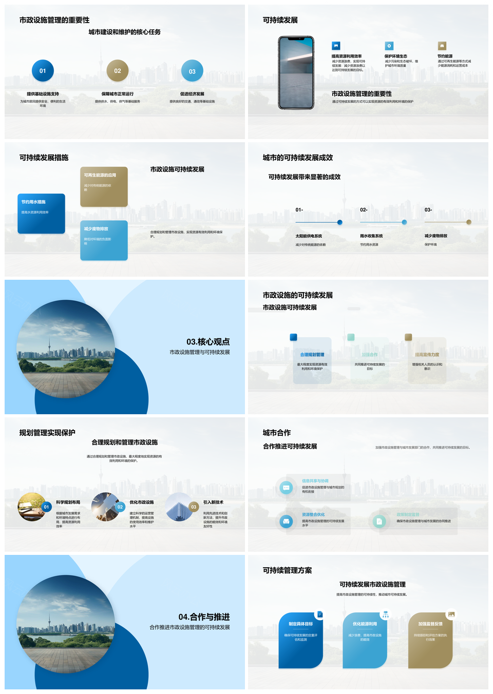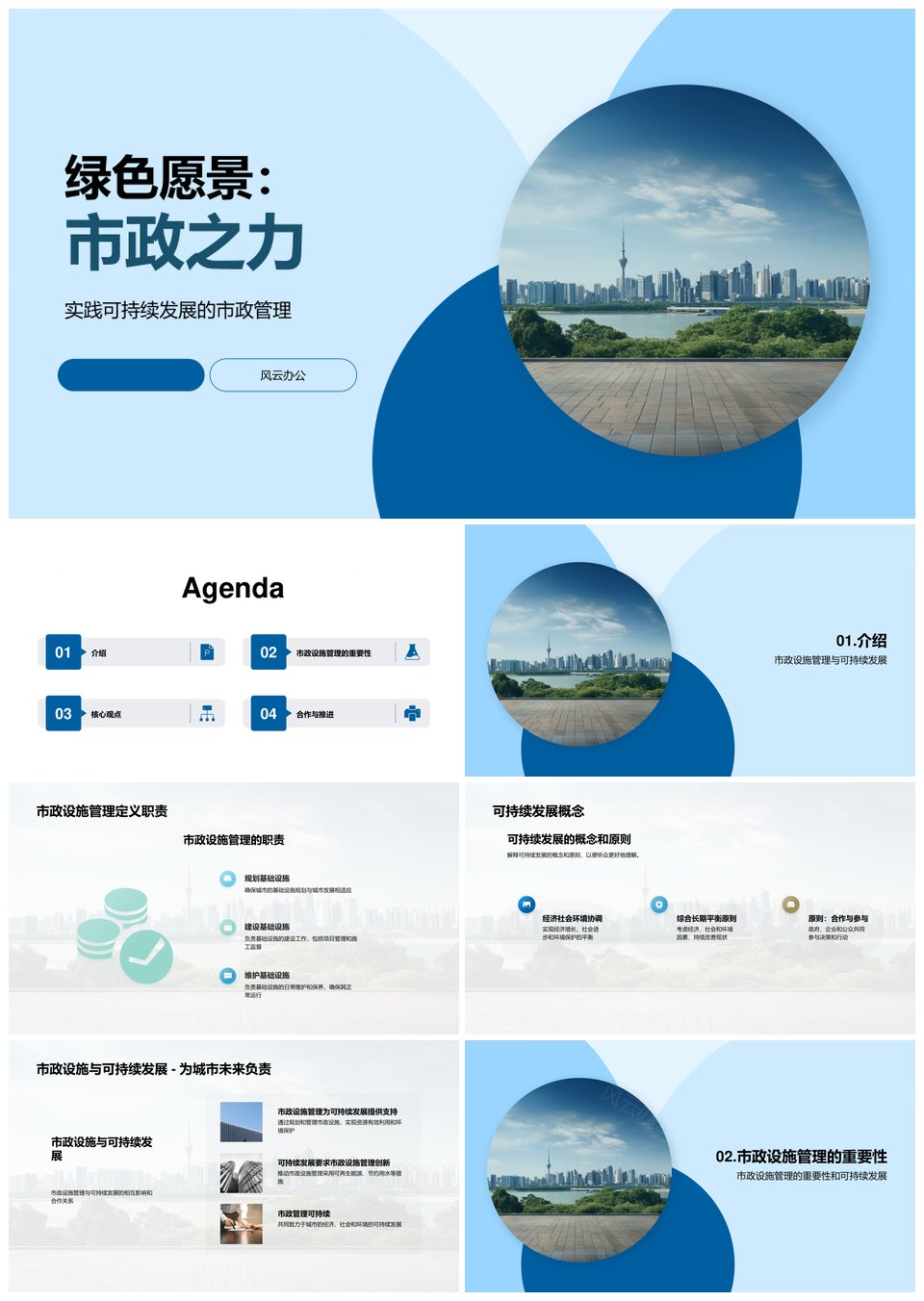 风云办公提供的市政设施管理驱动城市可持续建设PPT模板,下载格式为pptx,一共21页,作品中文字及图均可以修改和编辑,图片更改请在作品中右键图片并更换,文字修改请直接点击文字进行修改。