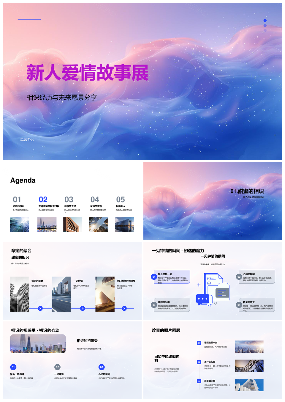 新人爱情故事一见钟情同好求婚环游世界婚礼PPT模板