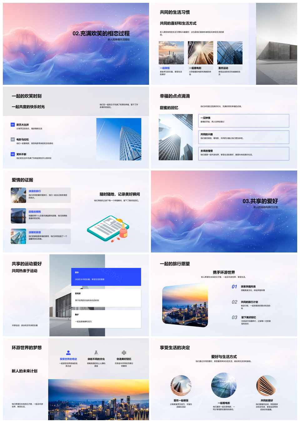 这是一张新人爱情故事一见钟情同好求婚环游世界婚礼PPT模板,包含新人、爱情、故事、一见钟情、同好、求婚、环游世界、婚礼等主题内容,也可用作新人一见钟情同好求婚环游世界、新人爱情故事一见钟情求婚、爱情故事一见钟情同好婚礼、一见钟情同好求婚环游世界、同好求婚环游世界婚礼、新人爱情故事环游世界、新人一见钟情环游世界、爱情故事环游世界婚礼、一见钟情求婚环游世界、新人同好环游世界婚礼、爱情求婚环游世界、同好环游世界婚礼、新人爱情故事求婚、一见钟情求婚婚礼、环游世界婚礼等PPT场景使用。 风云办公提供的新人爱情故事一见钟情同好求婚环游世界婚礼PPT模板,下载格式为pptx,一共28页,作品中文字及图均可以修改和编辑,图片更改请在作品中右键图片并更换,文字修改请直接点击文字进行修改。