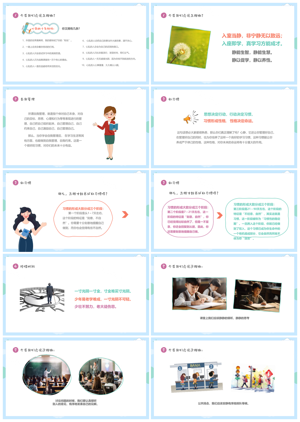 风云办公提供的彩色卡通儿童保持安静美德主题班会PPT模板,下载格式为pptx,一共30页,作品中文字及图均可以修改和编辑,图片更改请在作品中右键图片并更换,文字修改请直接点击文字进行修改。