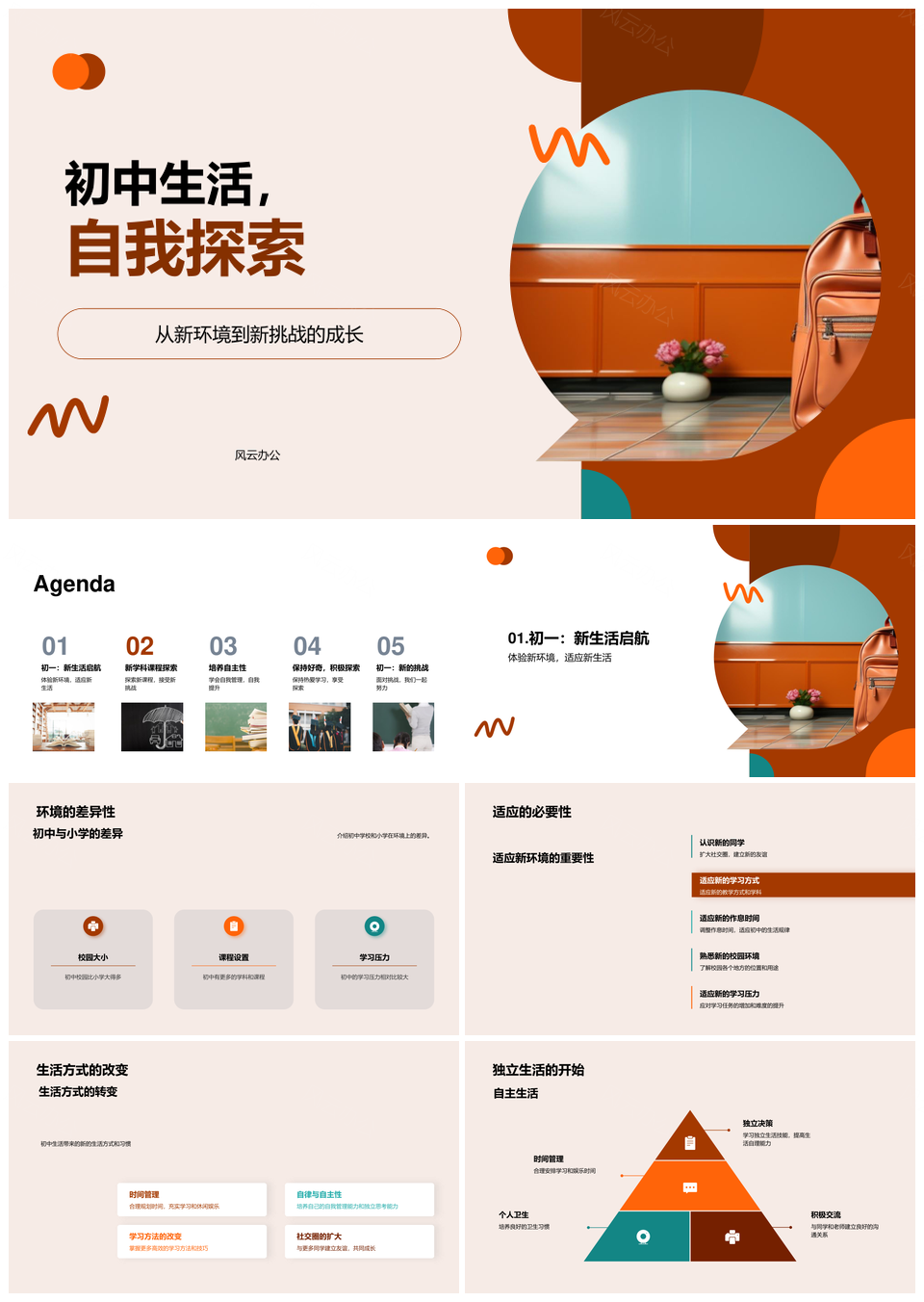 风云办公提供的初中生活自我探索迎战新环境学习规划PPT模板,下载格式为pptx,一共28页,作品中文字及图均可以修改和编辑,图片更改请在作品中右键图片并更换,文字修改请直接点击文字进行修改。