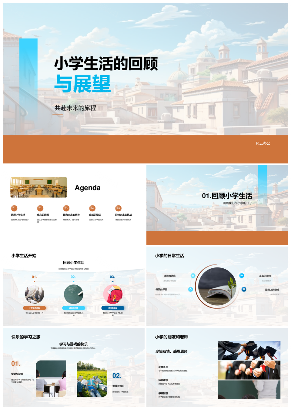 小学生活回望笑泪成长挑战展望校楼期待PPT模板推荐