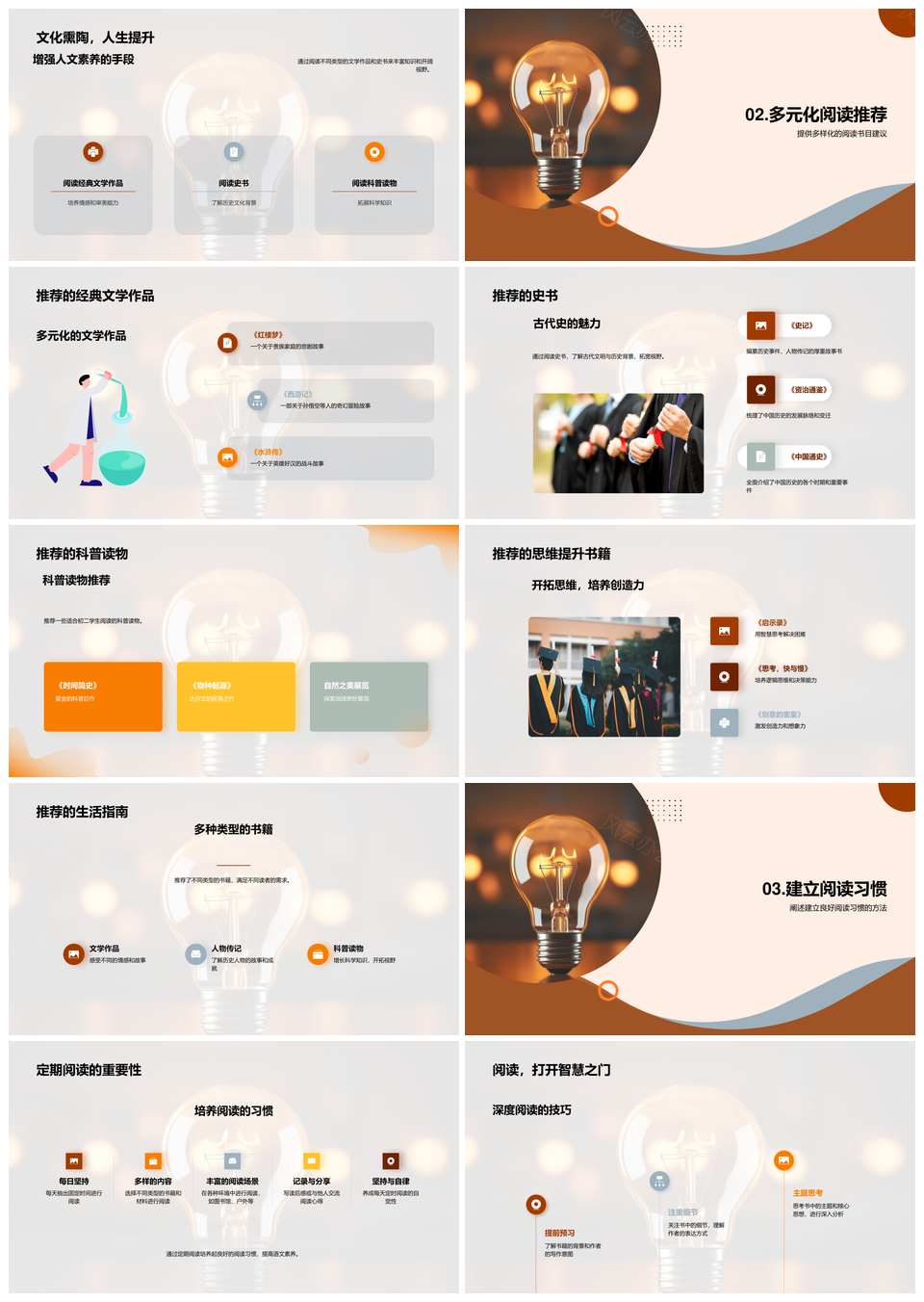 这是一张课外阅读经典史书科普提升语文素养习惯PPT模板,包含课外阅读、经典史书、科普、提升、语文素养、习惯等主题内容,也可用作课外阅读经典史书、阅读经典史书科普、经典史书科普提升、史书科普提升语文、科普提升语文素养、提升语文素养习惯、课外阅读经典史书科普、课外阅读提升语文素养、阅读科普提升语文、史书提升语文素养习惯、课外经典科普素养习惯、阅读史书语文习惯、科普语文素养习惯、课外史书提升素养、经典科普语文习惯等PPT场景使用。 风云办公提供的课外阅读经典史书科普提升语文素养习惯PPT模板,下载格式为pptx,一共33页,作品中文字及图均可以修改和编辑,图片更改请在作品中右键图片并更换,文字修改请直接点击文字进行修改。
