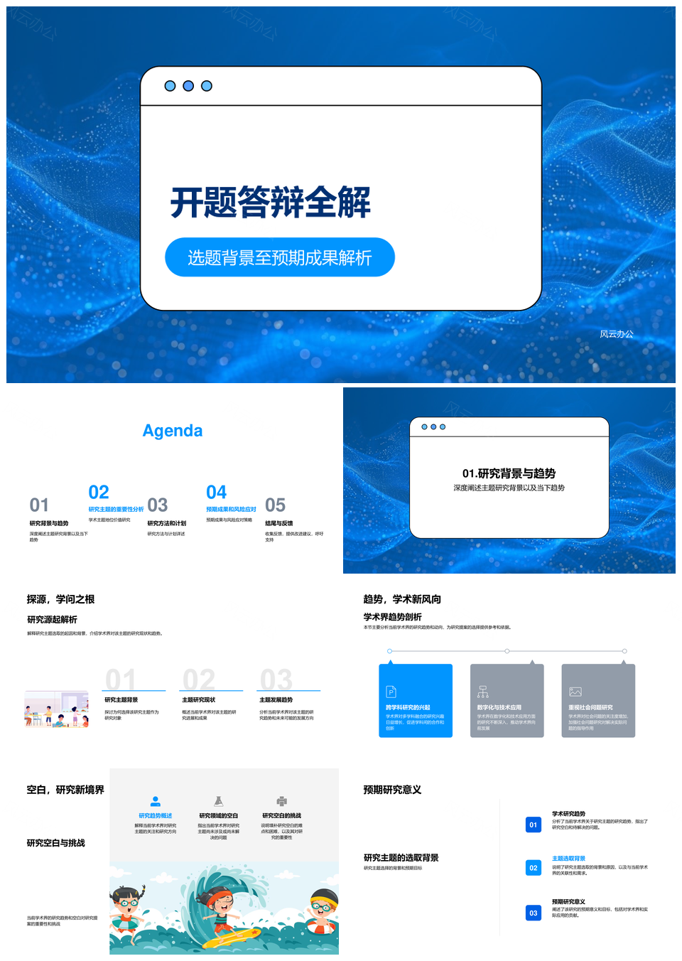 开题答辩背景主题趋势方法成果风险评估PPT模板推荐
