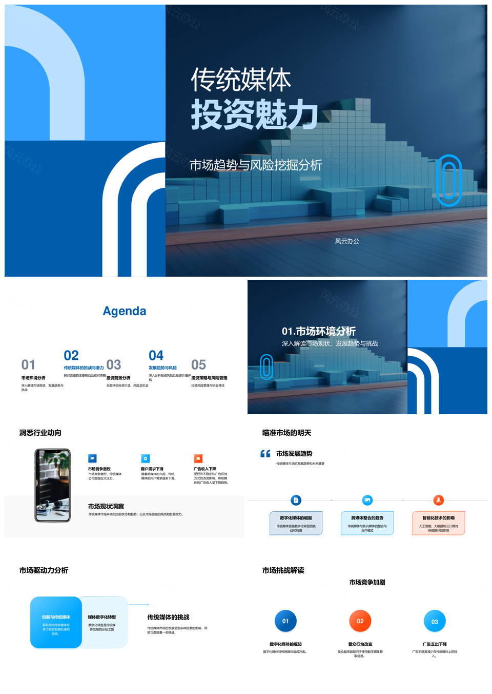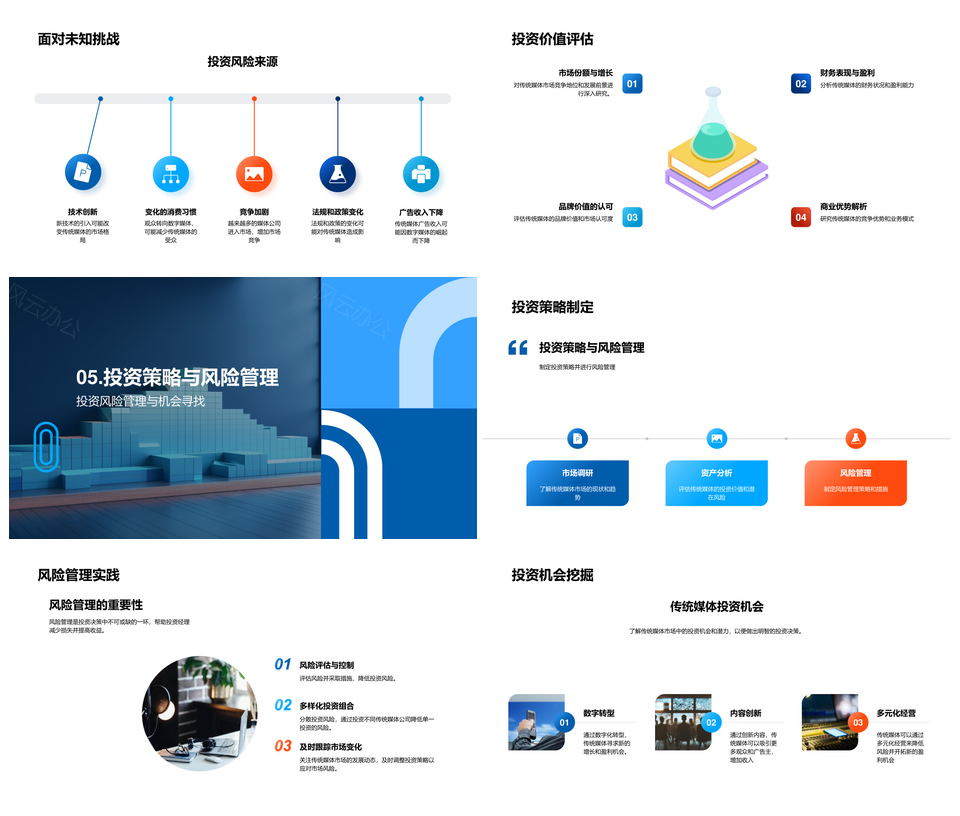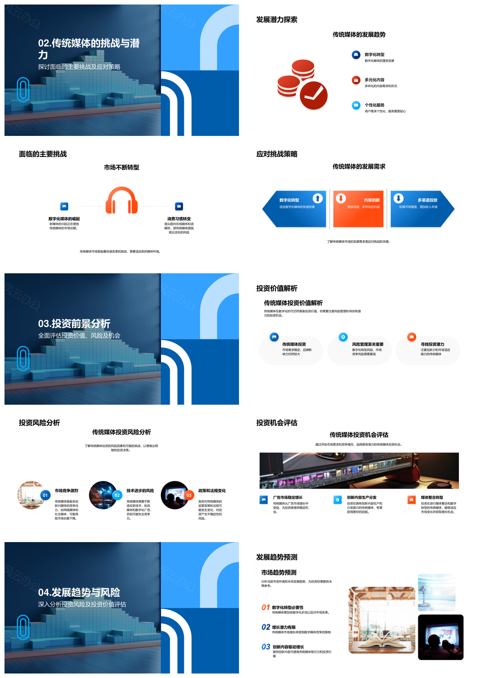 风云办公提供的传统媒体投资趋势风险解析助投资决策PPT模板,下载格式为pptx,一共24页,作品中文字及图均可以修改和编辑,图片更改请在作品中右键图片并更换,文字修改请直接点击文字进行修改。