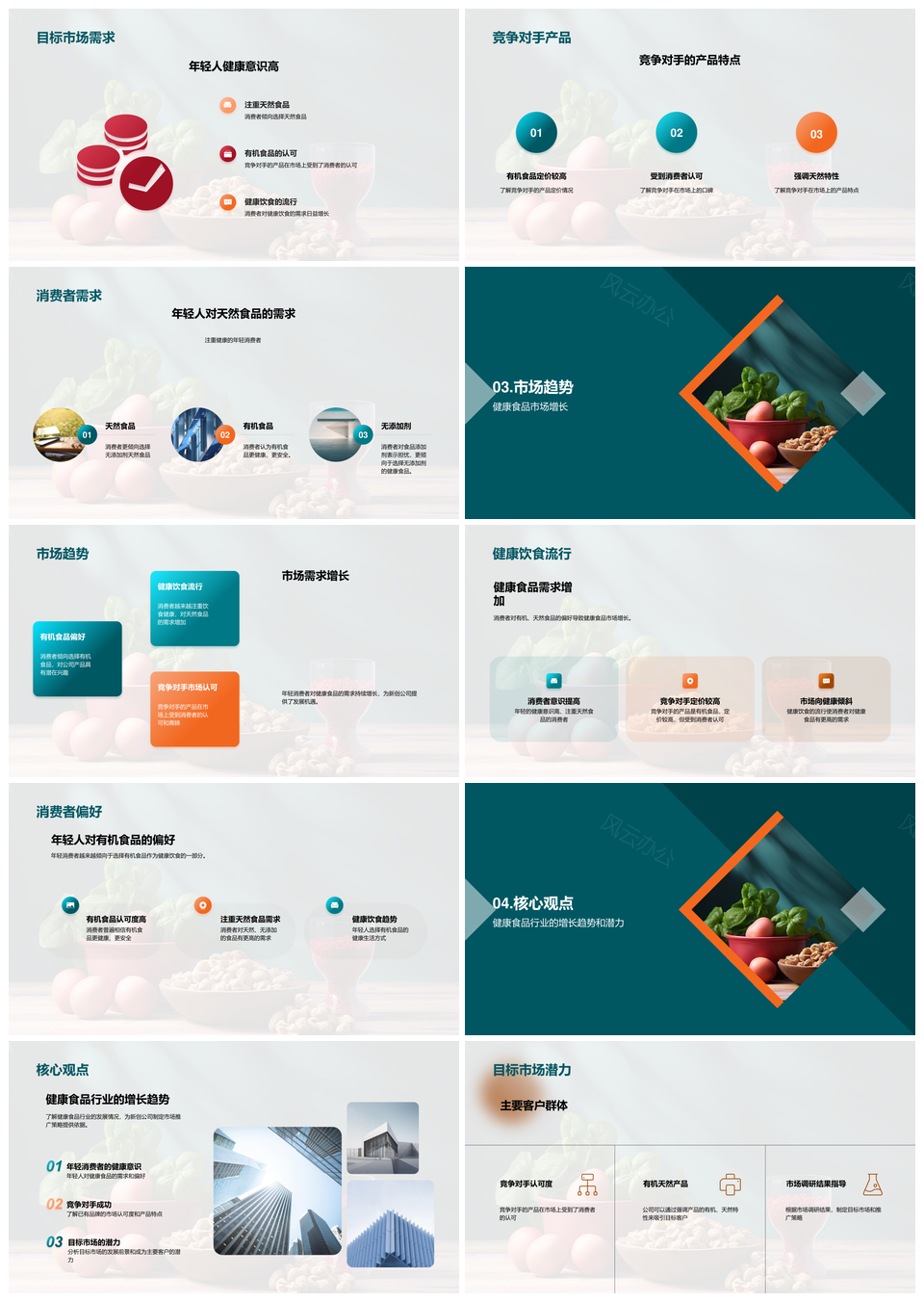 风云办公提供的健康食品市场挑战机遇有机消费分析PPT模板,下载格式为pptx,一共23页,作品中文字及图均可以修改和编辑,图片更改请在作品中右键图片并更换,文字修改请直接点击文字进行修改。