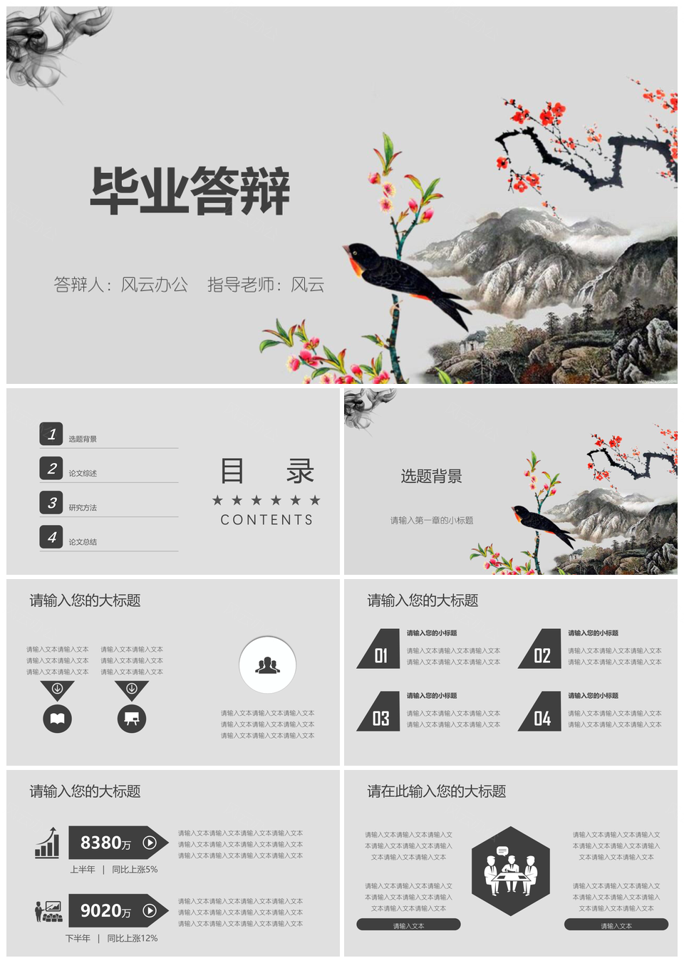 灰色中国风毕业答辩PPT模板精美