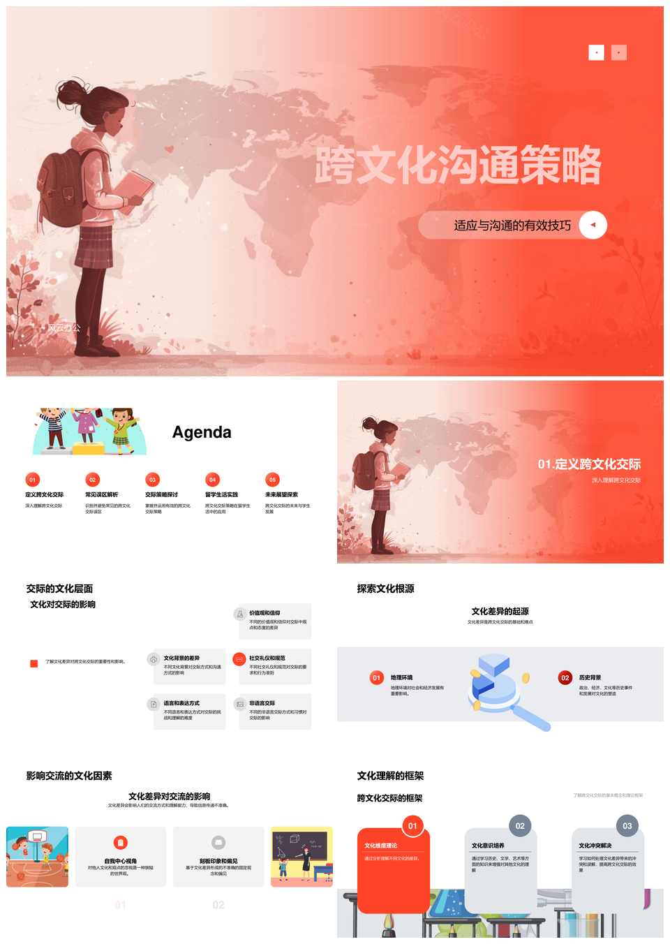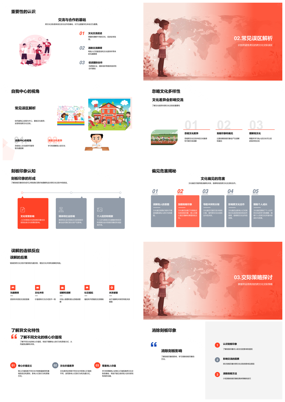 跨文化沟通策略定义差异尊重刻板印象避免PPT模板推荐
