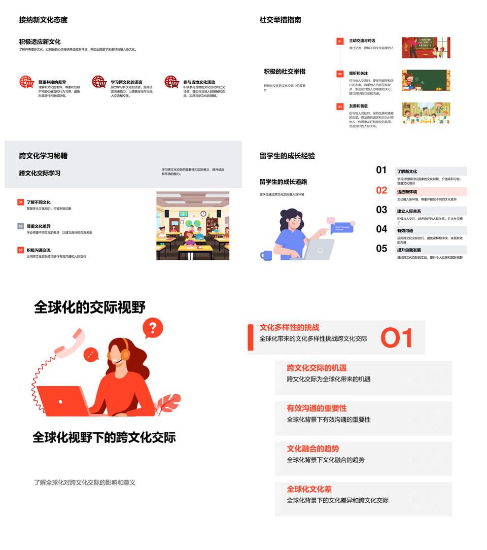 这是一张跨文化沟通策略定义差异尊重刻板印象避免PPT模板,包含跨文化沟通、策略、定义、差异、尊重、刻板印象、避免等主题内容,也可用作跨文化沟通策略定义、跨文化沟通差异尊重、差异尊重刻板印象避免、策略定义差异尊重、跨文化策略定义差异、跨文化沟通策略、沟通策略定义、策略定义差异、定义差异尊重、差异尊重刻板印象、尊重刻板印象避免、跨文化差异尊重、跨文化刻板印象避免、跨文化沟通、沟通策略等PPT场景使用。 风云办公提供的跨文化沟通策略定义差异尊重刻板印象避免PPT模板,下载格式为pptx,一共33页,作品中文字及图均可以修改和编辑,图片更改请在作品中右键图片并更换,文字修改请直接点击文字进行修改。