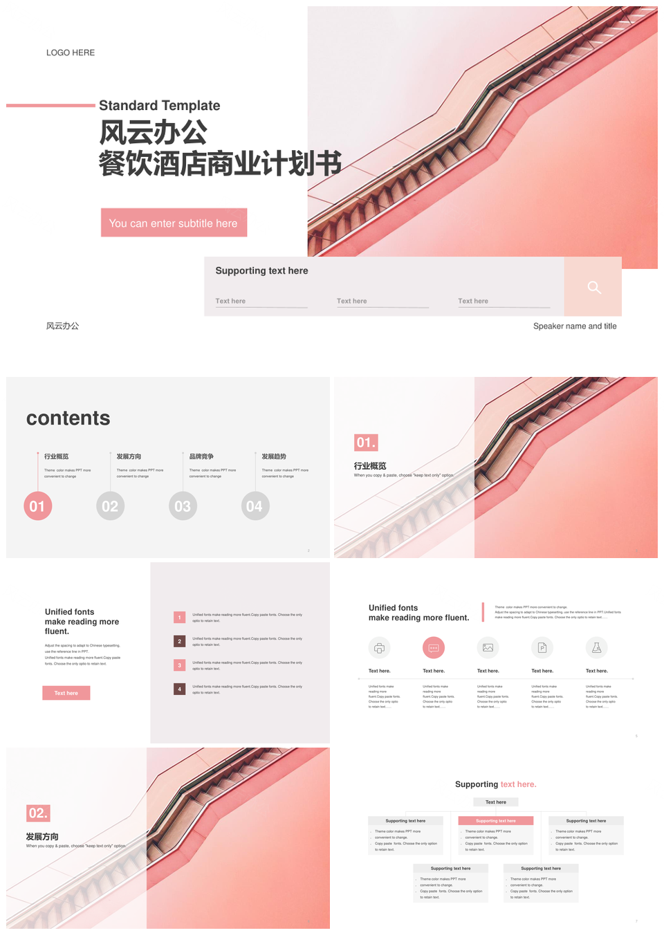 风云办公提供的粉色简约现代餐饮酒店企划案PPT模板,下载格式为pptx,一共15页,作品中文字及图均可以修改和编辑,图片更改请在作品中右键图片并更换,文字修改请直接点击文字进行修改。