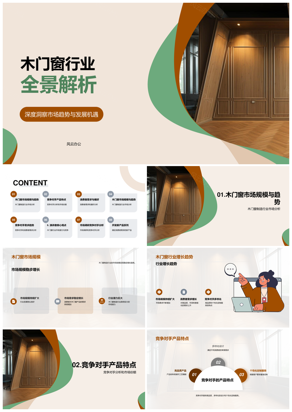 风云办公提供的木门窗行业趋势市场规模竞争分析PPT模板,下载格式为pptx,一共27页,作品中文字及图均可以修改和编辑,图片更改请在作品中右键图片并更换,文字修改请直接点击文字进行修改。