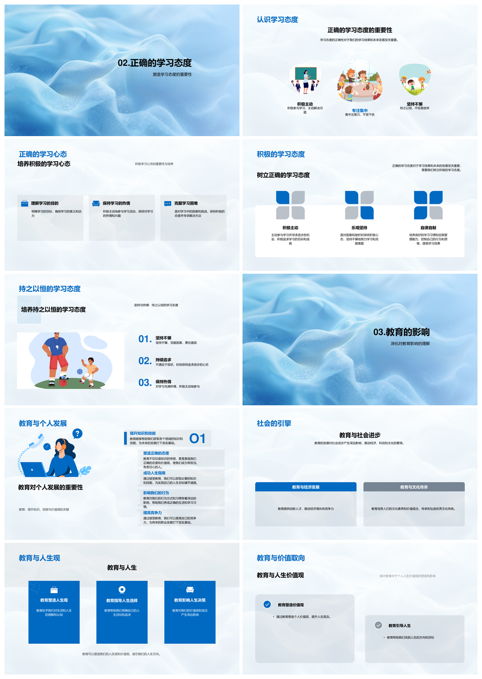教育价值与学习态度影响学生未来正确观念PPT模板推荐
