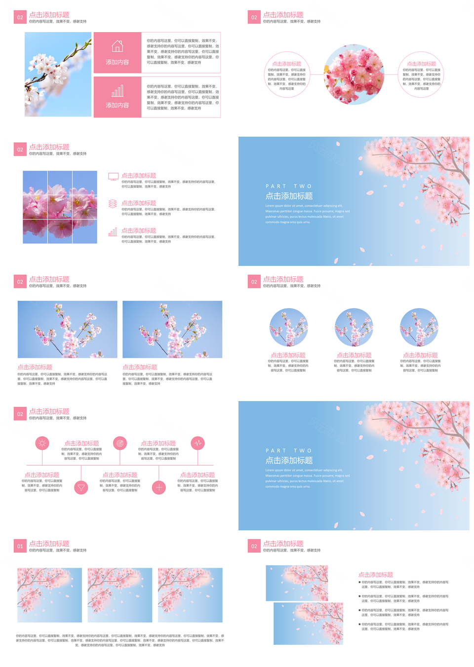彩色白色小清新樱花PPT
