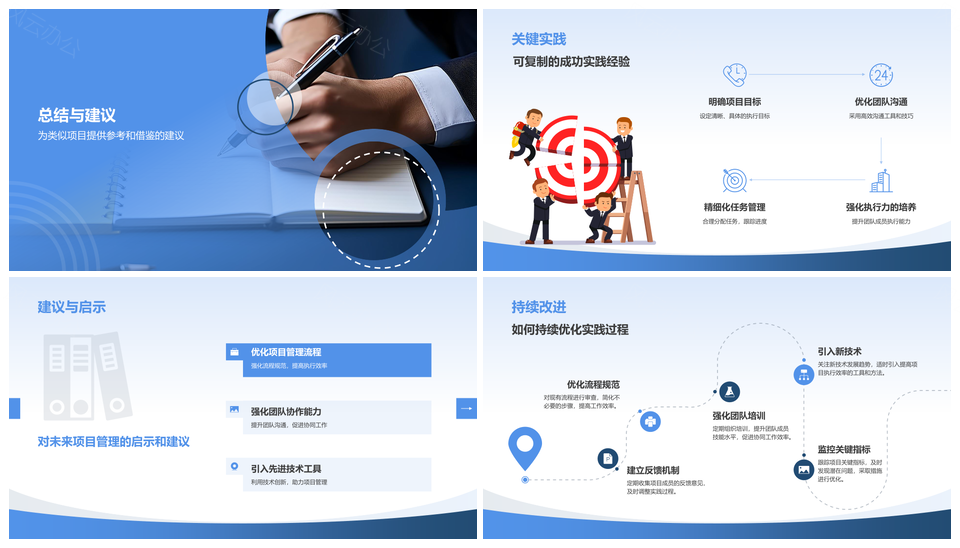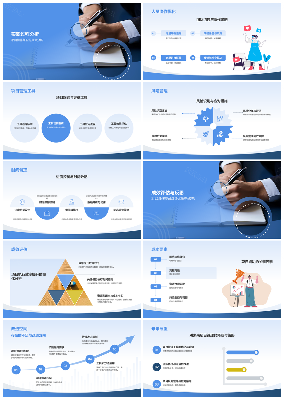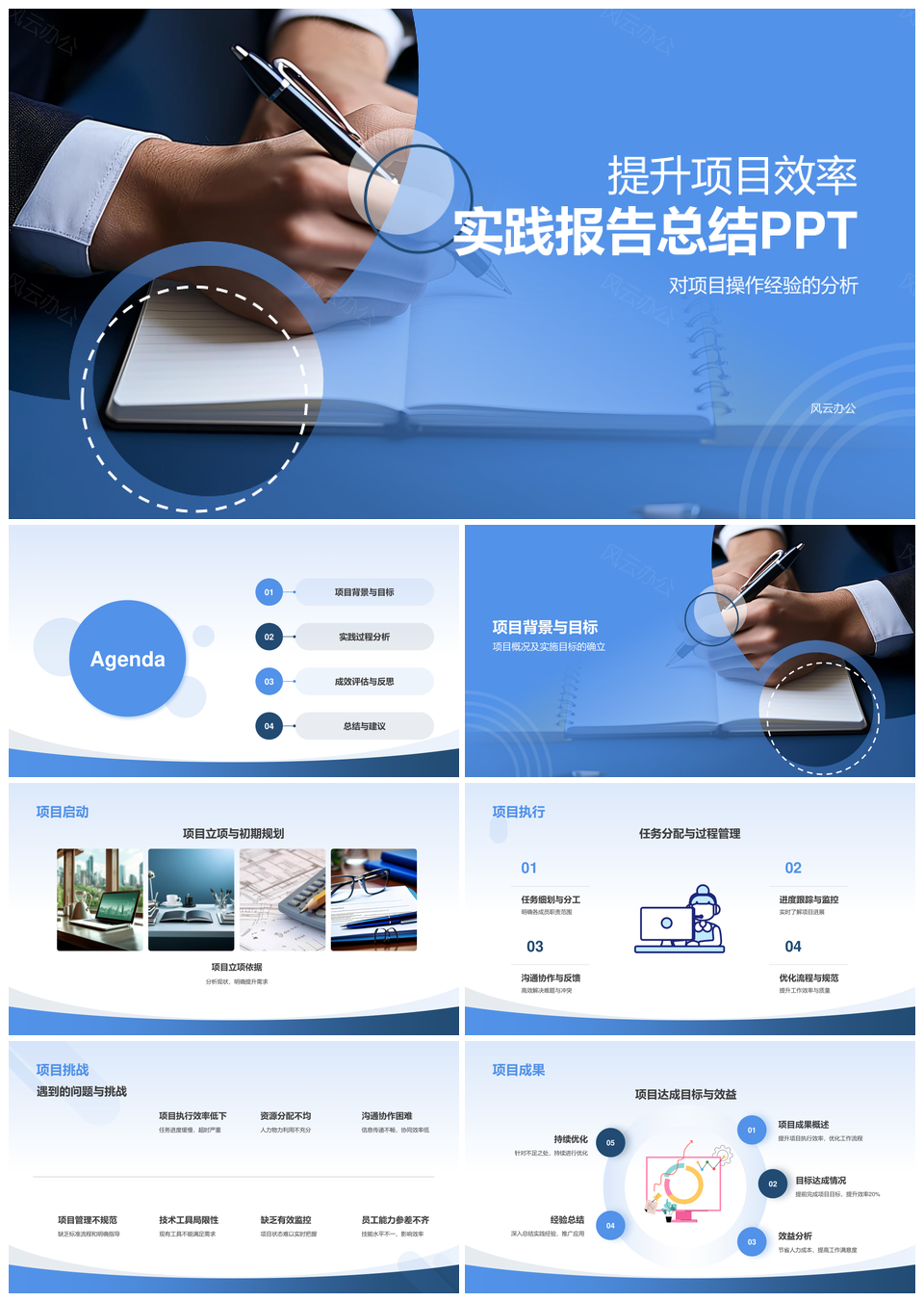 蓝色商务项目实践活动总结进度汇报报告PPT模板