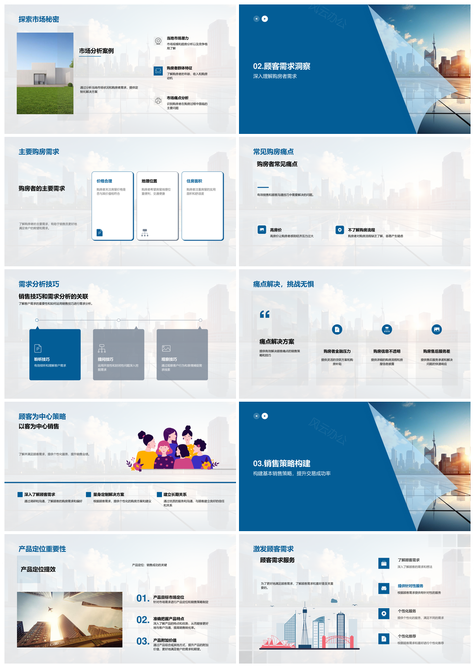 风云办公提供的房地产销售技能提升策略顾客需求分析PPT模板,下载格式为pptx,一共33页,作品中文字及图均可以修改和编辑,图片更改请在作品中右键图片并更换,文字修改请直接点击文字进行修改。