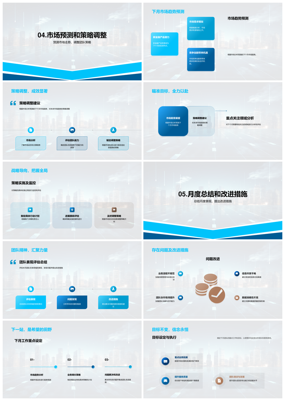 金融市场月度业绩竞争策略及摩天规划分析PPT模板