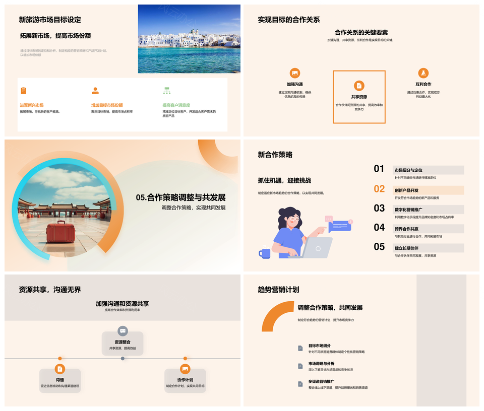 风云办公提供的新年旅游趋势战略合作布局古建PPT模板,下载格式为pptx,一共24页,作品中文字及图均可以修改和编辑,图片更改请在作品中右键图片并更换,文字修改请直接点击文字进行修改。
