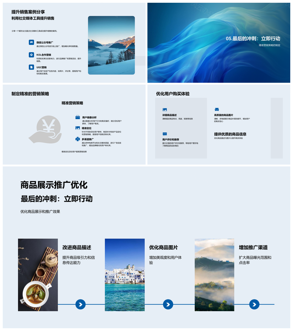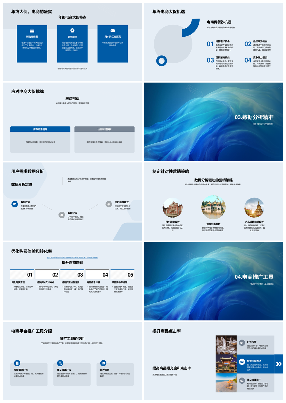 这是一张餐饮电商年终大促营销策略制定与挑战应对PPT模板,包含餐饮、电商、年终大促、营销策略、制定、挑战、应对等主题内容,也可用作餐饮、电商、年终、大促、营销策略、制定、挑战、应对 餐饮电商年终大促、餐饮电商营销策略制定、年终大促挑战应对、餐饮电商挑战应对、营销策略制定挑战应对、餐饮年终大促营销策略、电商年终大促挑战、大促营销策略制定挑战、制定挑战应对、餐饮电商营销策略、年终大促营销策略、营销策略制定挑战、挑战应对、餐饮电商、年终大促、营销策略制定、餐饮大促、餐饮营销策略、电商大促、电商营销策略、年终营销策略、大促营销策略等PPT场景使用。 风云办公提供的餐饮电商年终大促营销策略制定与挑战应对PPT模板,下载格式为pptx,一共23页,作品中文字及图均可以修改和编辑,图片更改请在作品中右键图片并更换,文字修改请直接点击文字进行修改。
