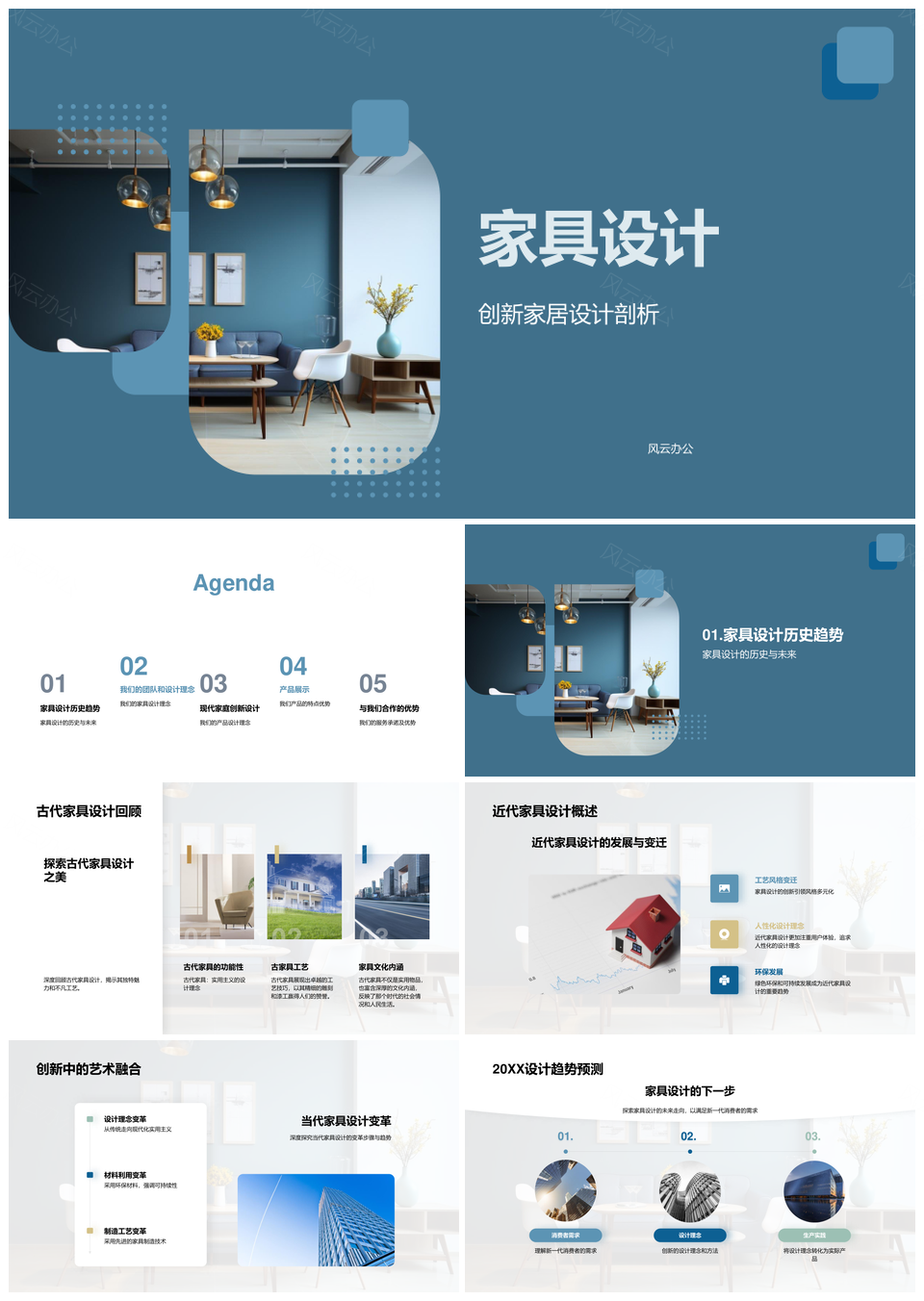 风云办公提供的创新居家现代家具设计理念与工艺趋势PPT模板,下载格式为pptx,一共28页,作品中文字及图均可以修改和编辑,图片更改请在作品中右键图片并更换,文字修改请直接点击文字进行修改。
