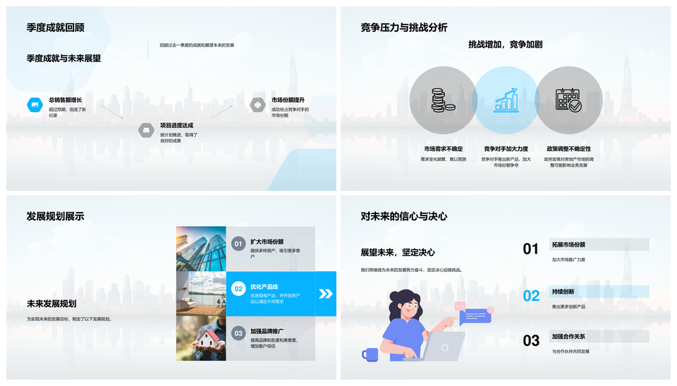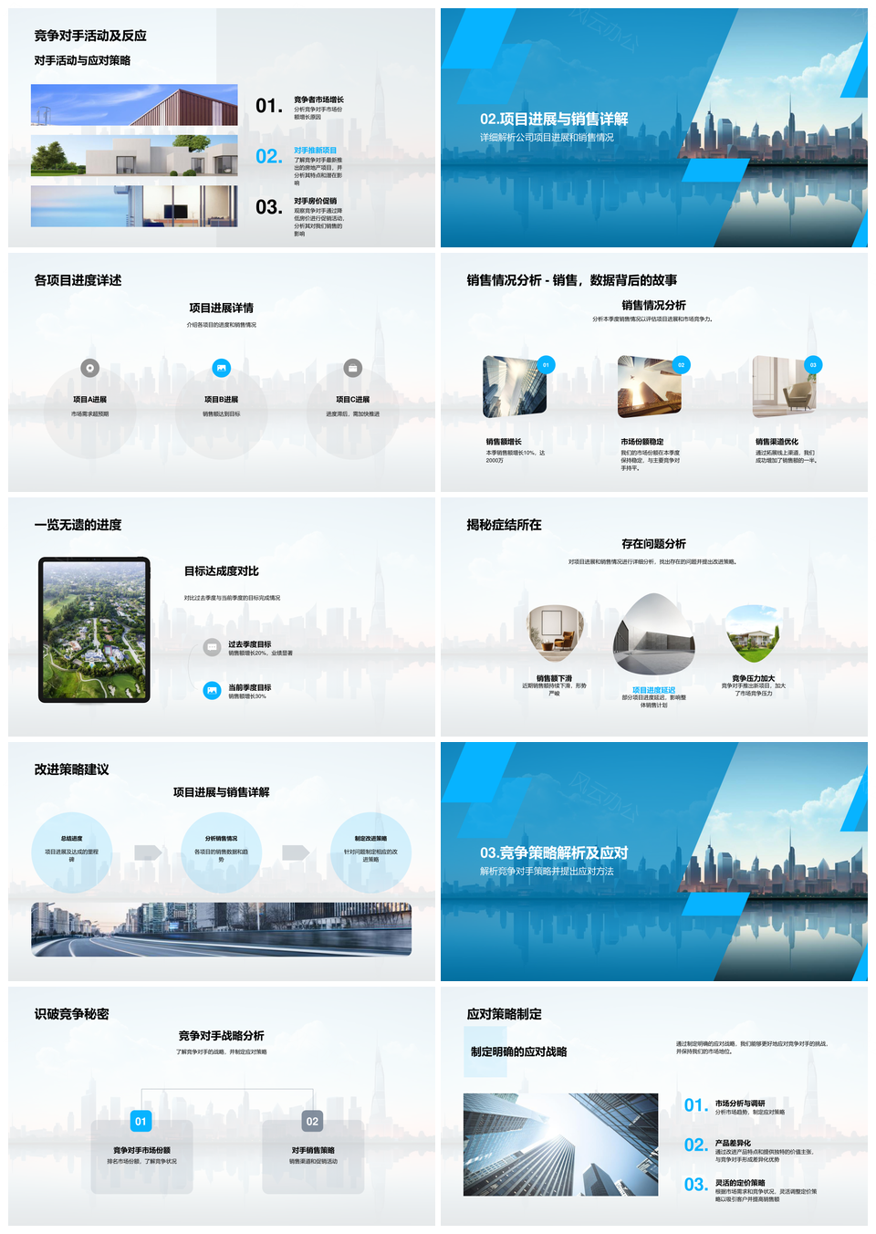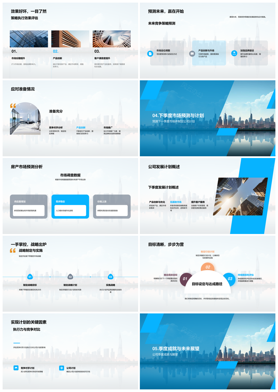 风云办公提供的房地产市场季度趋势与竞争策略分析PPT模板,下载格式为pptx,一共32页,作品中文字及图均可以修改和编辑,图片更改请在作品中右键图片并更换,文字修改请直接点击文字进行修改。