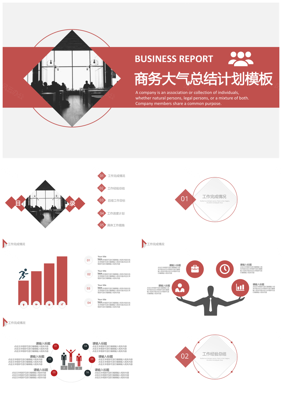 红色大气商务风工作总结工作计划年终总结PPT模板