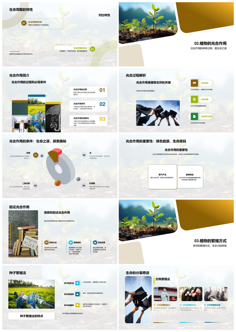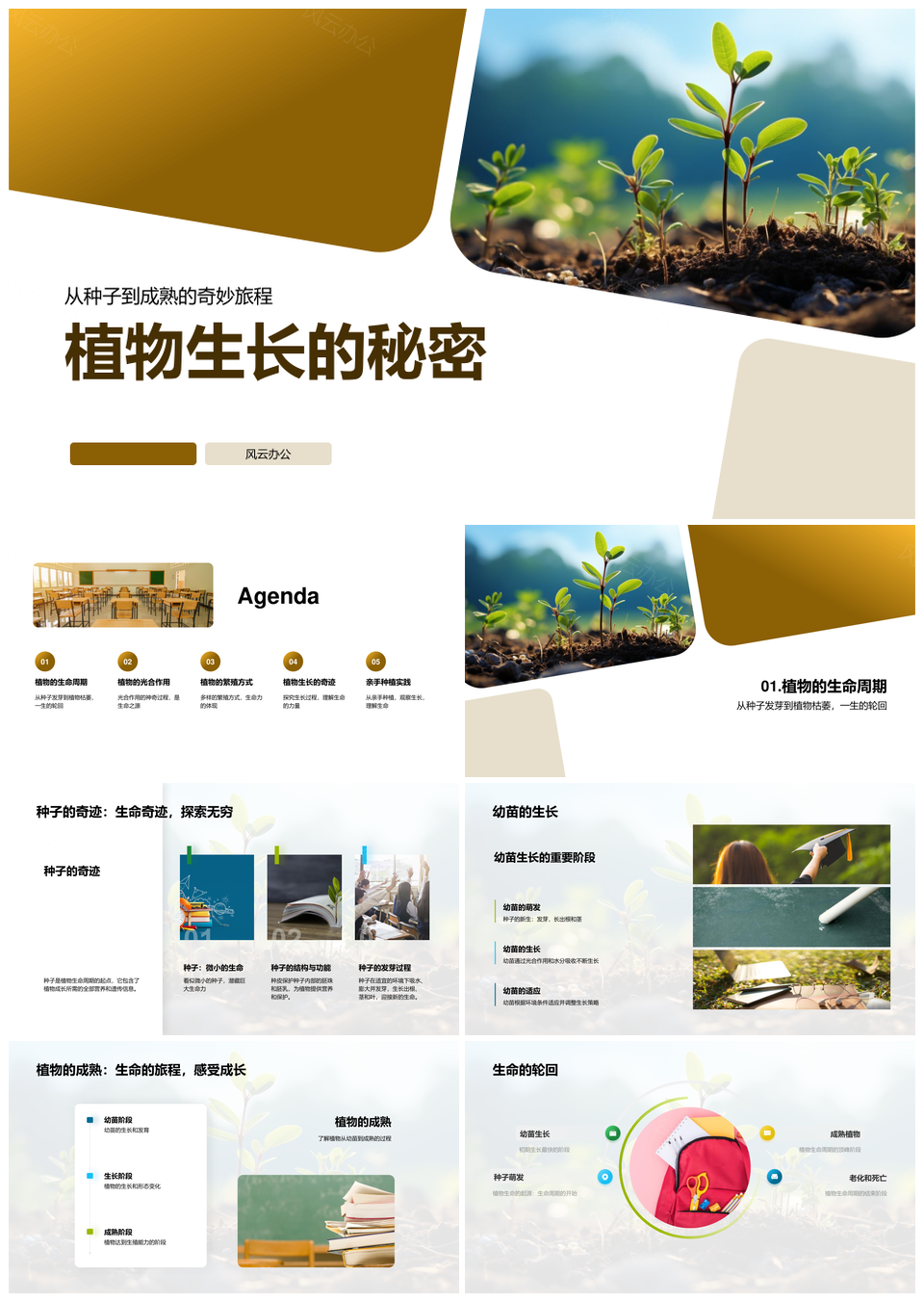 风云办公提供的植物生长从种子到成熟的光合繁殖PPT模板,下载格式为pptx,一共33页,作品中文字及图均可以修改和编辑,图片更改请在作品中右键图片并更换,文字修改请直接点击文字进行修改。