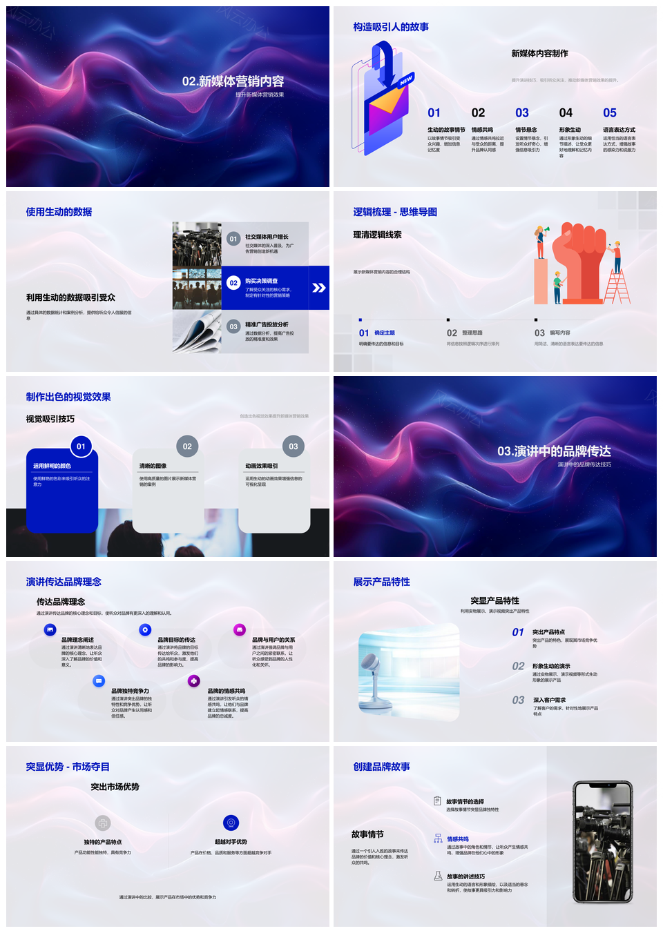 新媒体营销演讲技巧与品牌市场效益内容数据逻辑故事培训PPT模板推荐