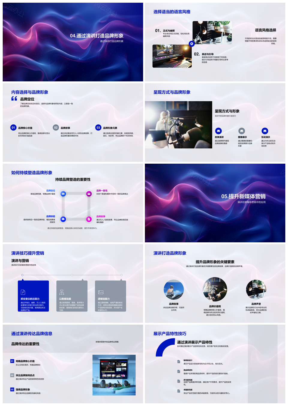 这是一张新媒体营销演讲技巧与品牌市场效益内容数据逻辑故事培训PPT模板,包含新媒体、营销、演讲技巧、品牌、市场效益、内容、数据、逻辑、故事、培训等主题内容,也可用作新媒体营销演讲技巧、品牌市场效益内容数据、市场效益内容数据逻辑、内容数据逻辑故事培训、品牌市场效益逻辑故事、新媒体营销品牌市场、营销演讲技巧品牌、内容数据逻辑故事、新媒体营销内容数据、演讲技巧品牌市场、市场效益数据逻辑、逻辑故事培训、品牌市场效益、内容数据逻辑、市场效益数据等PPT场景使用。 风云办公提供的新媒体营销演讲技巧与品牌市场效益内容数据逻辑故事培训PPT模板,下载格式为pptx,一共29页,作品中文字及图均可以修改和编辑,图片更改请在作品中右键图片并更换,文字修改请直接点击文字进行修改。