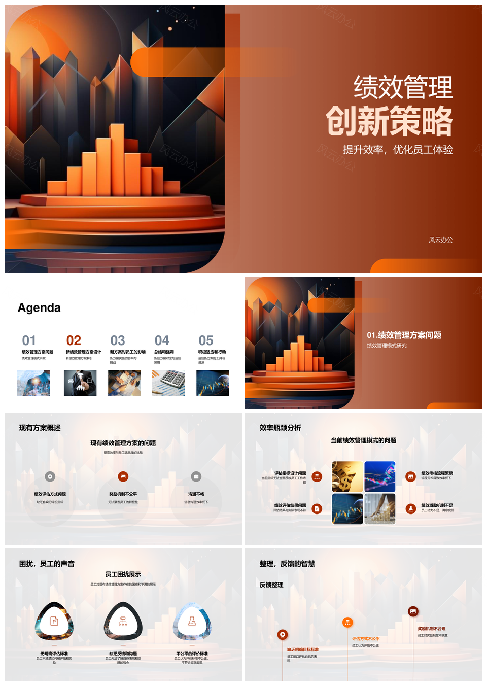 风云办公提供的绩效管理创新提效优体验破瓶颈PPT模板,下载格式为pptx,一共30页,作品中文字及图均可以修改和编辑,图片更改请在作品中右键图片并更换,文字修改请直接点击文字进行修改。