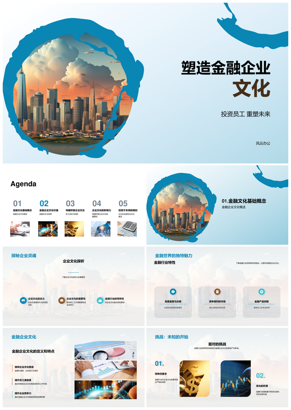 风云办公提供的金融企业文化投资员工重塑未来PPT模板,下载格式为pptx,一共28页,作品中文字及图均可以修改和编辑,图片更改请在作品中右键图片并更换,文字修改请直接点击文字进行修改。