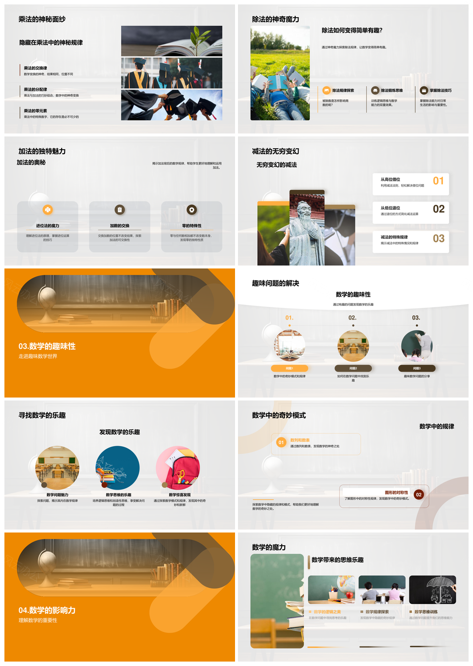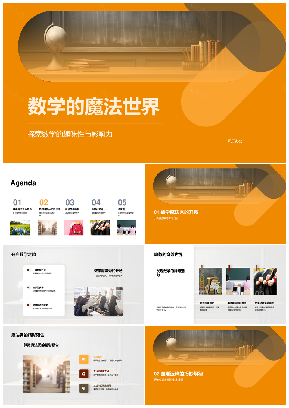 风云办公提供的数学符号魔力四则运算趣影PPT模板,下载格式为pptx,一共24页,作品中文字及图均可以修改和编辑,图片更改请在作品中右键图片并更换,文字修改请直接点击文字进行修改。