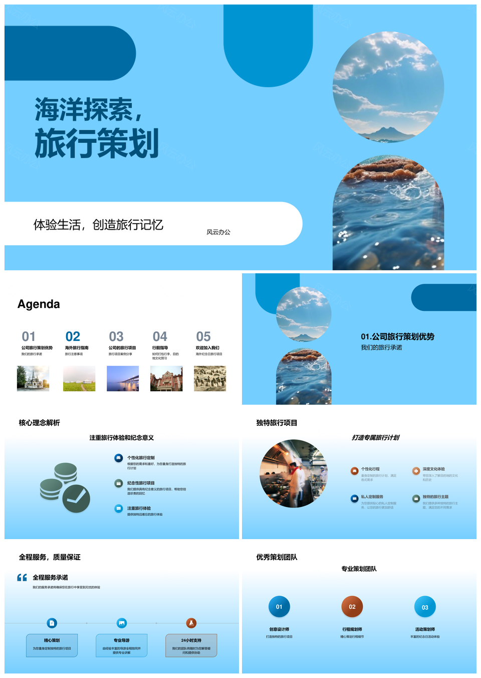 风云办公提供的海洋探索纪念日旅行全程深度体验服务PPT模板,下载格式为pptx,一共29页,作品中文字及图均可以修改和编辑,图片更改请在作品中右键图片并更换,文字修改请直接点击文字进行修改。