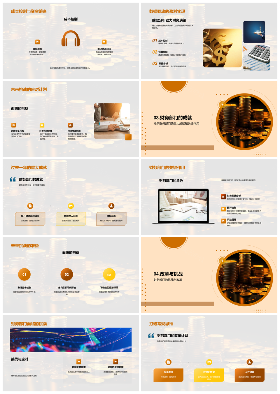 风云办公提供的财务部门挑战突破历程策略关键指标PPT模板,下载格式为pptx,一共23页,作品中文字及图均可以修改和编辑,图片更改请在作品中右键图片并更换,文字修改请直接点击文字进行修改。