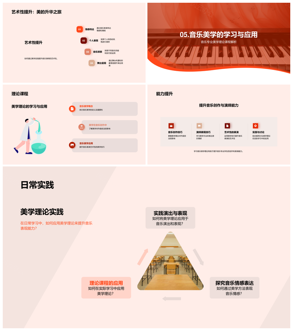 这是一张音乐美学创作演绎与作曲技法研究PPT模板,包含音乐美学、创作、演绎、作曲技法、研究等主题内容,也可用作音乐美学创作演绎、美学创作演绎作曲、创作演绎作曲技法、演绎作曲技法研究、音乐美学创作、美学创作演绎、创作演绎作曲、演绎作曲技法、作曲技法研究、美学、美学创作、创作演绎、演绎作曲、作曲技法、技法研究等PPT场景使用。