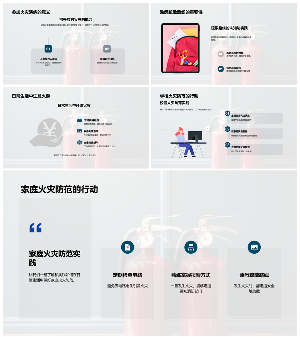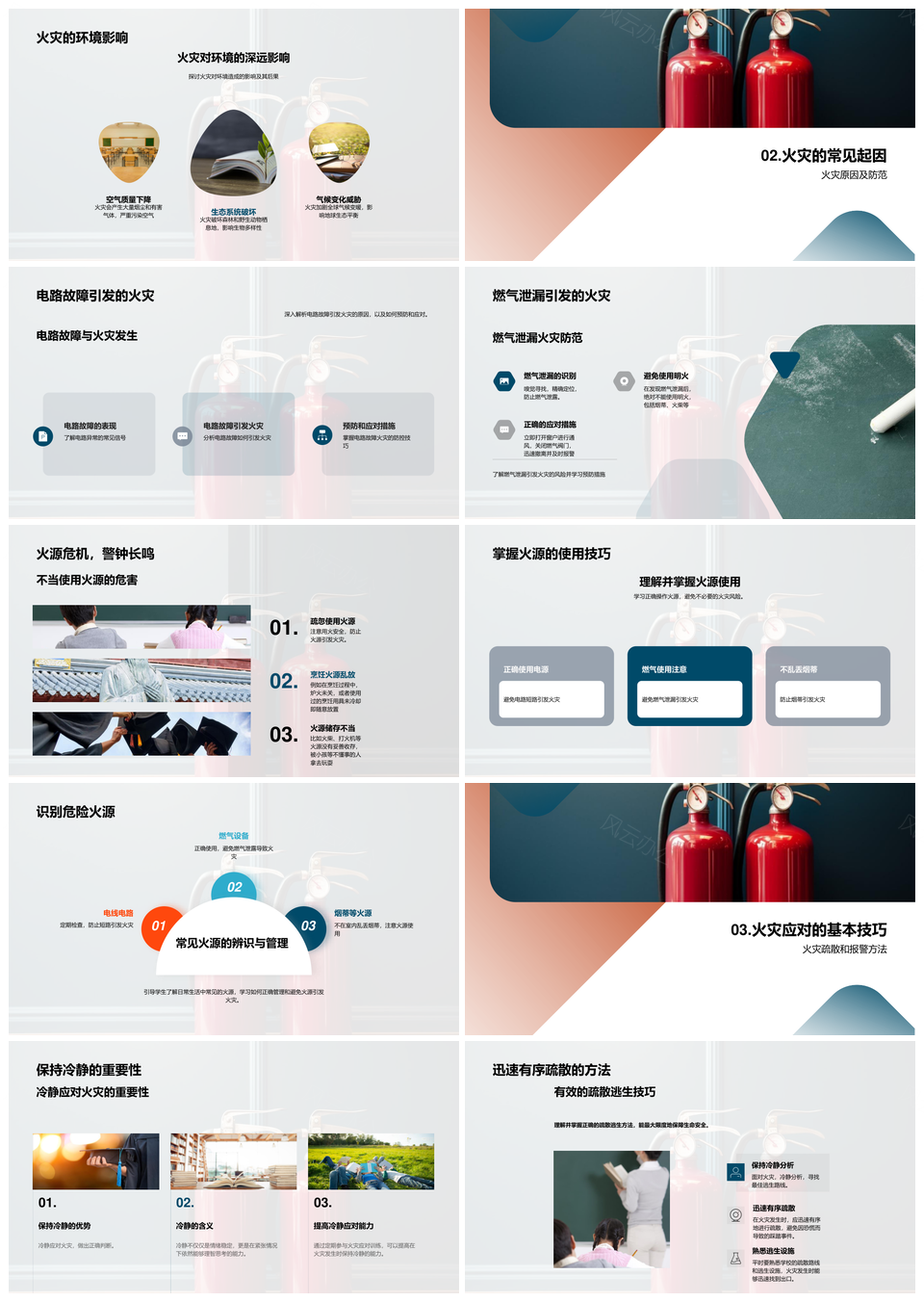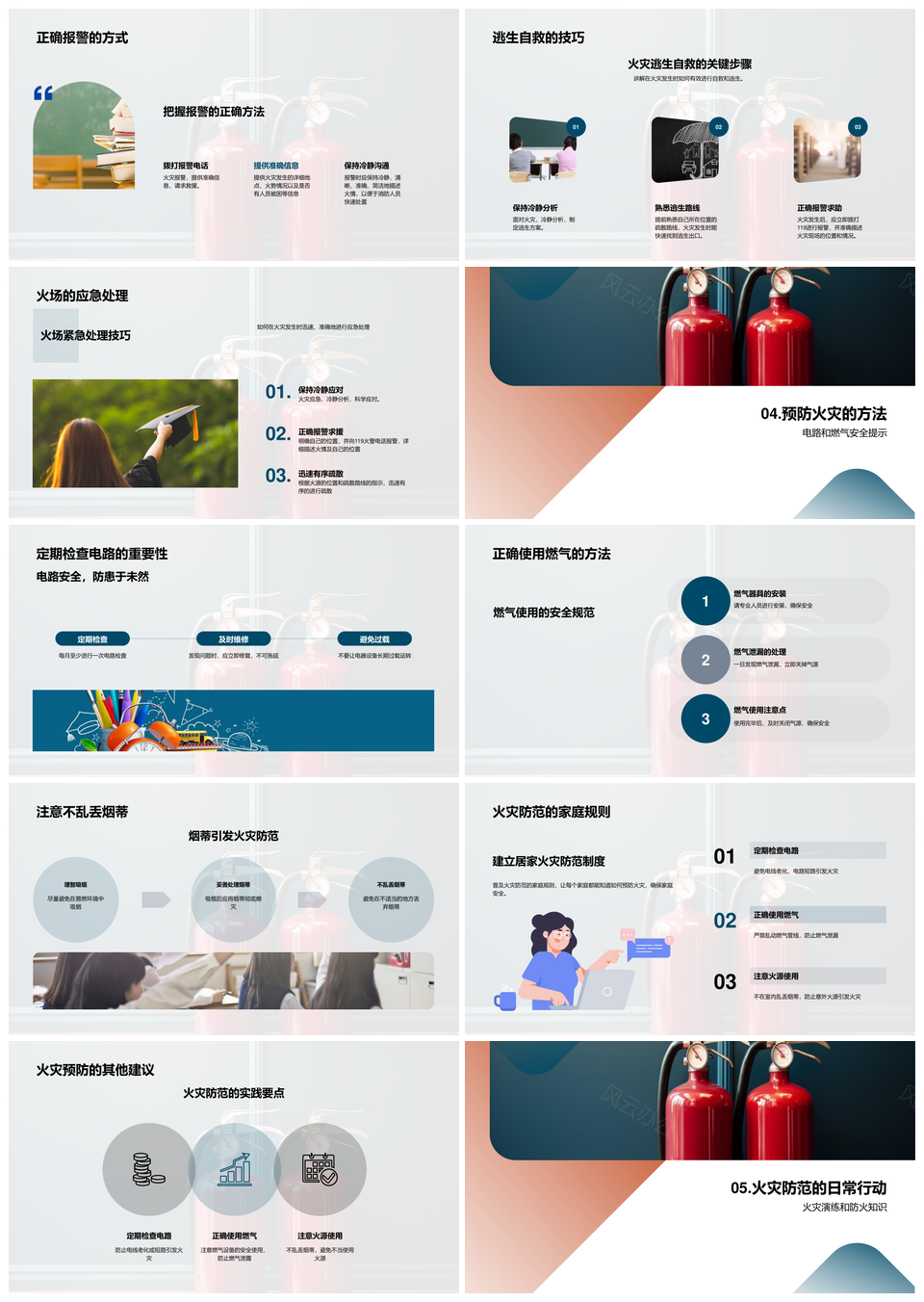 这是一张火灾安全教育电路燃气防火疏散灭火技巧PPT模板,包含火灾、安全教育、电路、燃气、防火、疏散、灭火技巧等主题内容,也可用作火灾安全教育电路燃气、燃气防火疏散灭火技巧、电路燃气防火疏散、防火疏散灭火技巧、火灾安全教育电路、教育电路燃气防火、安全电路燃气防火、燃气防火灭火技巧、安全疏散灭火技巧、火灾疏散灭火技巧、燃气防火疏散技巧、安全教育灭火技巧、电路防火疏散灭火、火灾电路燃气防火、安全燃气防火疏散等PPT场景使用。 风云办公提供的火灾安全教育电路燃气防火疏散灭火技巧PPT模板,下载格式为pptx,一共33页,作品中文字及图均可以修改和编辑,图片更改请在作品中右键图片并更换,文字修改请直接点击文字进行修改。