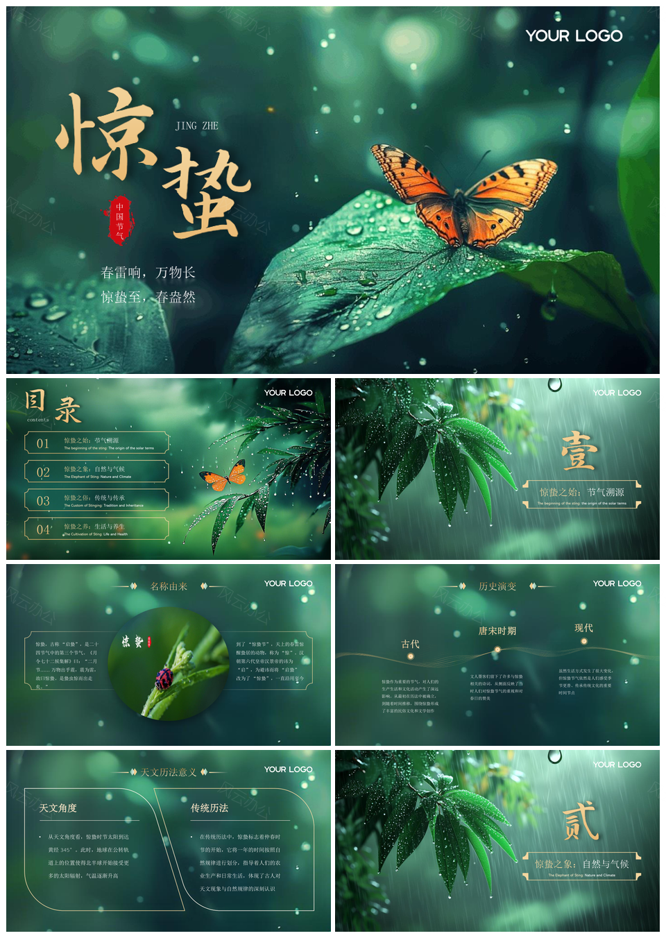 这是一张绿色中国风惊蛰节气PPT模板,包含绿色、中国风、惊蛰、节气等主题内容,也可用作绿色中国风惊蛰节气、绿色中国风惊蛰、中国风惊蛰节气、绿色惊蛰节气、绿色中国风节气、绿色中国风、中国风惊蛰、惊蛰节气、绿色惊蛰、中国风节气、绿色节气等PPT场景使用。 风云办公提供的绿色中国风惊蛰节气PPT模板,下载格式为pptx,一共19页,作品中文字及图均可以修改和编辑,图片更改请在作品中右键图片并更换,文字修改请直接点击文字进行修改。