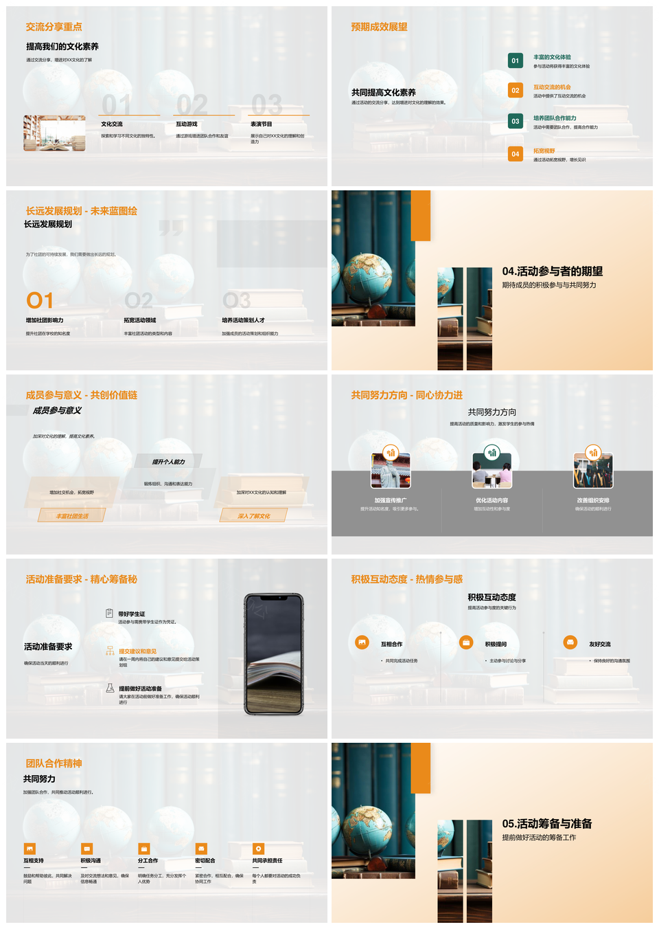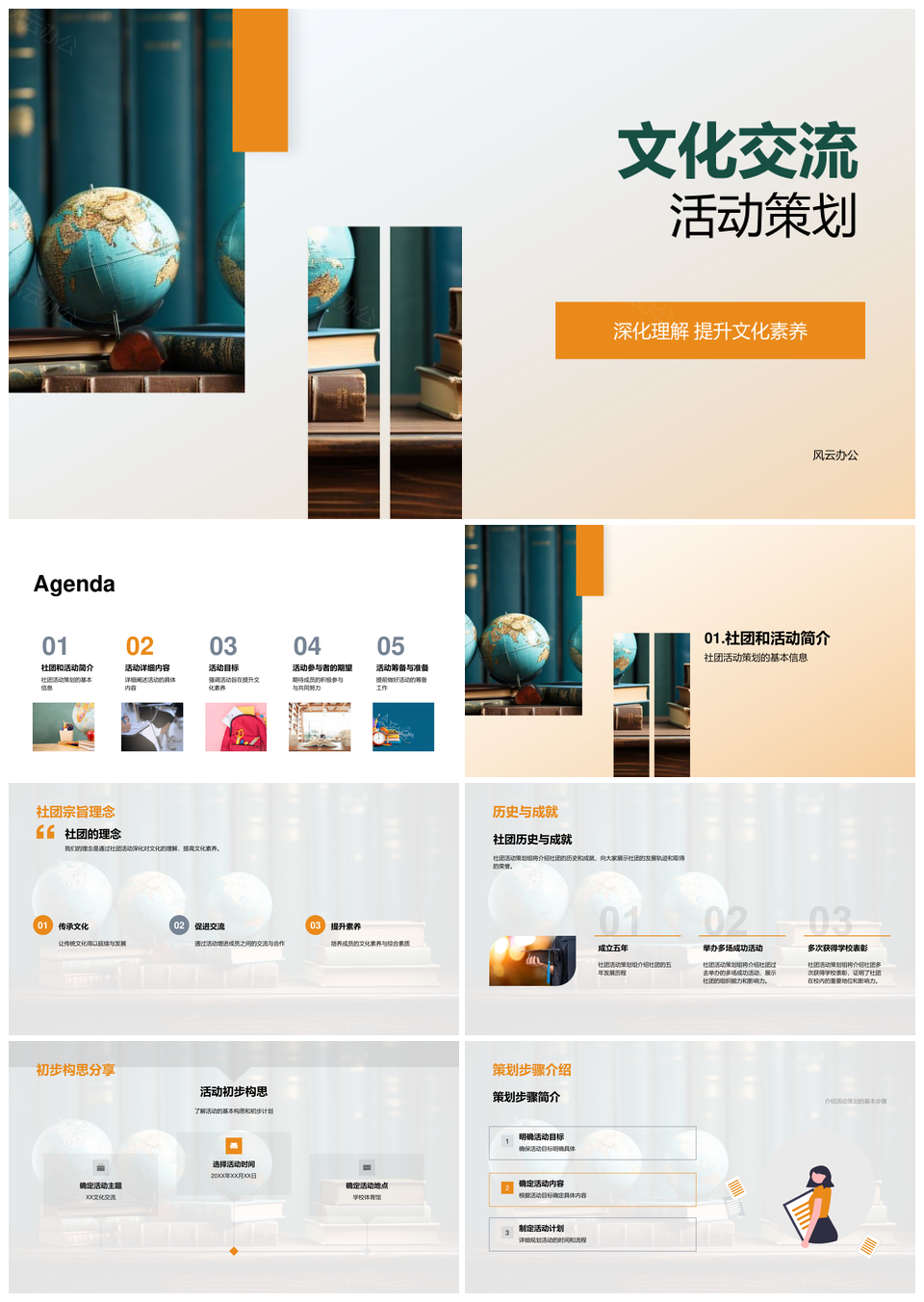 风云办公提供的社团地球仪文化交流互动表演策划活动PPT模板,下载格式为pptx,一共33页,作品中文字及图均可以修改和编辑,图片更改请在作品中右键图片并更换,文字修改请直接点击文字进行修改。