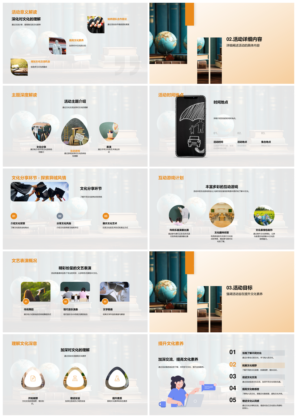 这是一张社团地球仪文化交流互动表演策划活动PPT模板,包含社团、地球仪、文化、交流、互动、表演、策划、活动等主题内容,也可用作社团地球仪文化交流互动表演策划活动、地球仪文化交流互动表演策划活动、社团地球仪文化交流互动表演、社团地球仪文化交流互动策划、社团地球仪文化交流表演策划、地球仪文化交流互动表演策划、社团文化交流互动表演策划活动、社团地球仪文化互动表演活动、地球仪文化交流互动表演活动、文化交流互动表演策划活动、社团文化互动表演策划活动、社团地球仪文化交流策划、文化交流互动表演策划、地球仪文化交流活动、互动表演策划活动等PPT场景使用。